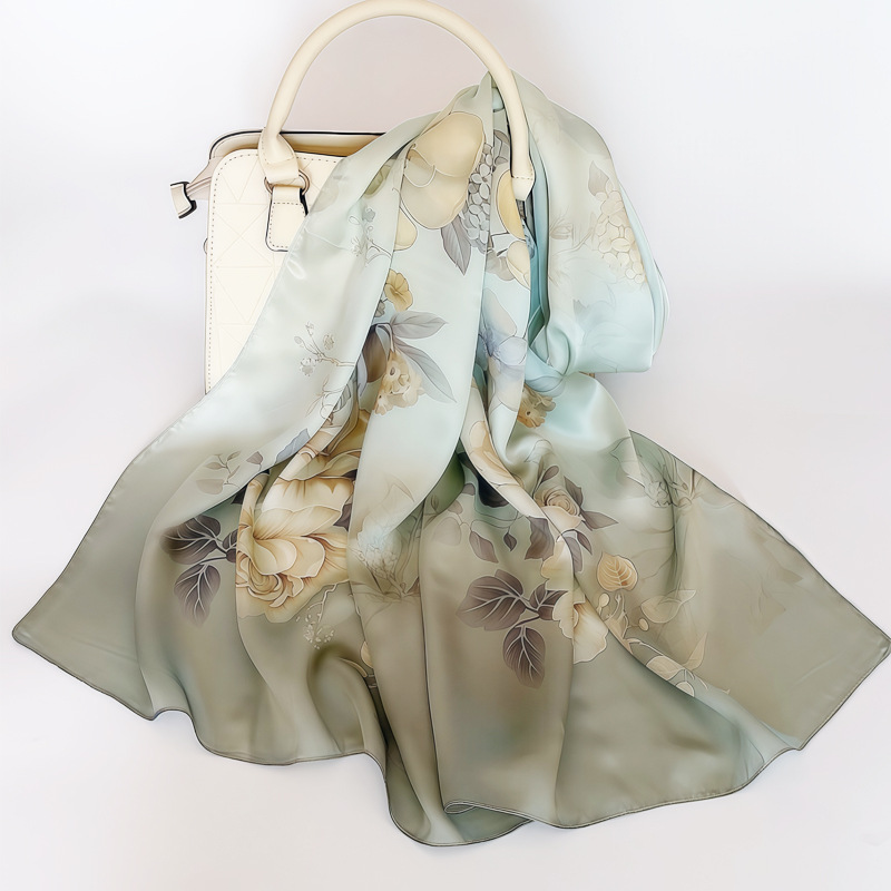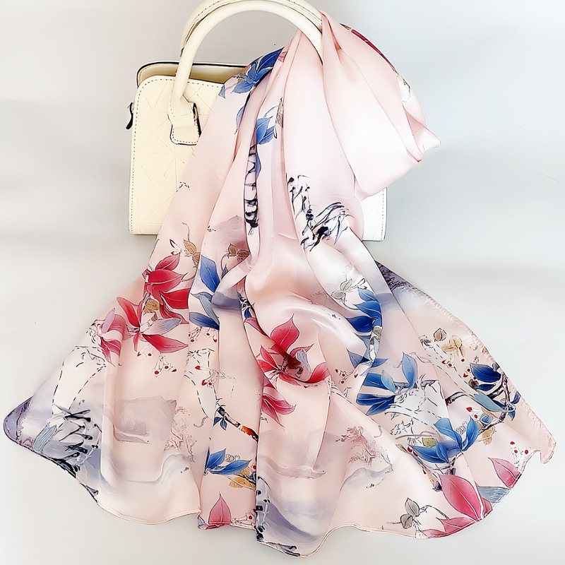 항저우 실크 실크 스카프 여성의 봄과 가을 새로운 중국 스타일 100 뽕나무 실크 새틴 롱 스카프 크로스 보더 도매