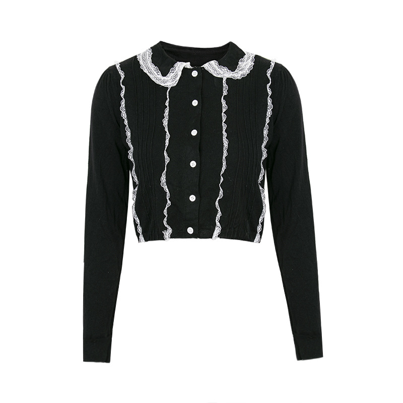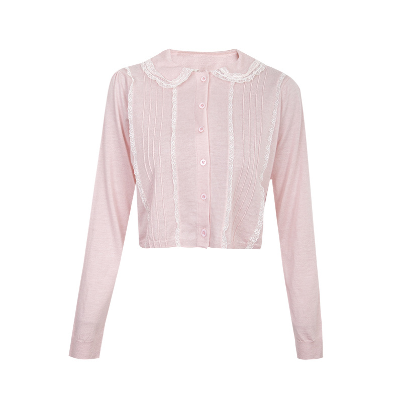 Miu Aesthetic Fine Lace 스티칭 카디건 탑 여성용 솔리드 컬러 우아한 소프트 왁스 니트 짧은 재킷
