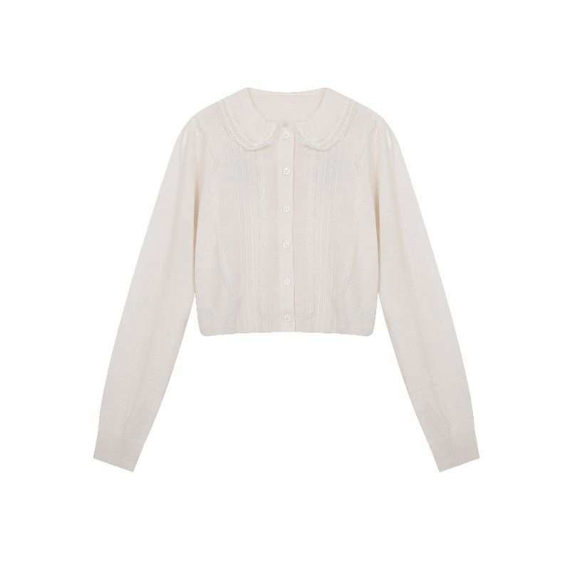 Miu Aesthetic Fine Lace 스티칭 카디건 탑 여성용 솔리드 컬러 우아한 소프트 왁스 니트 짧은 재킷스토어 가기