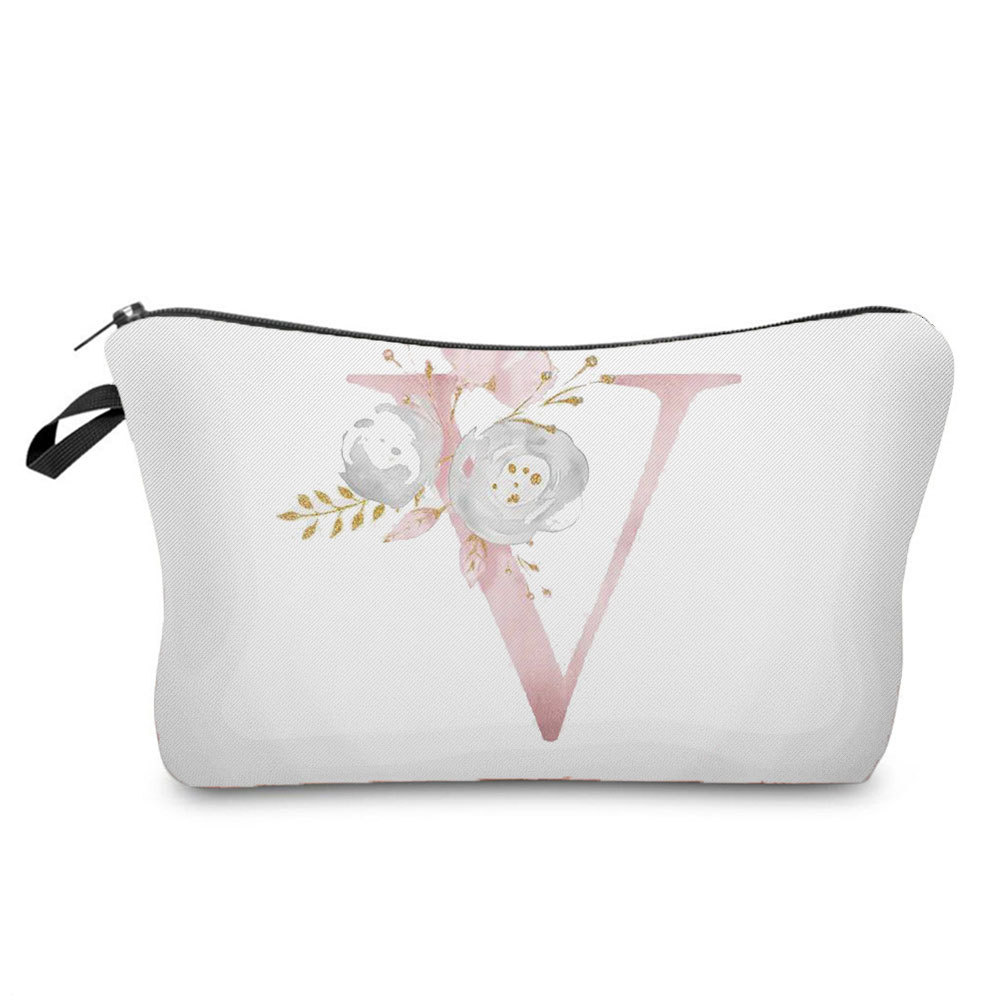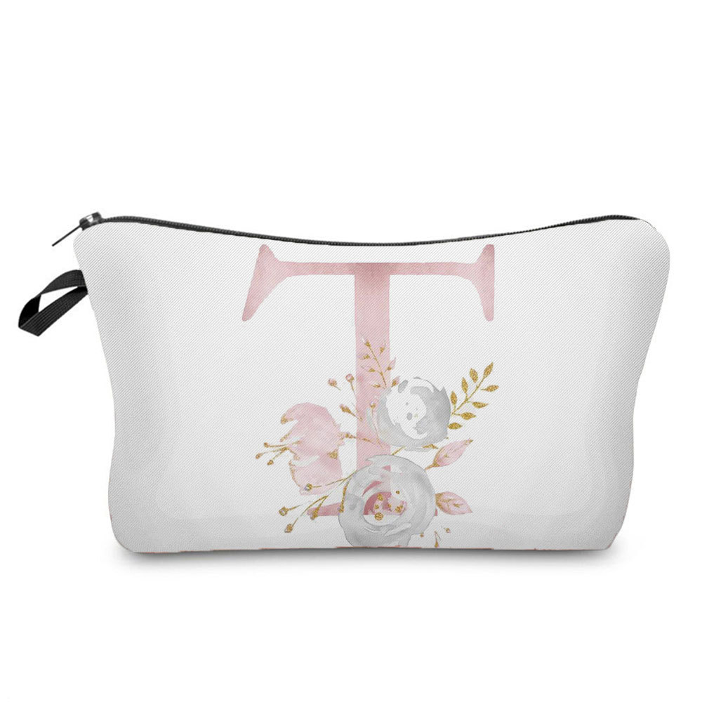 花朵字母图案收纳洗漱包收纳袋一件代发跨境款粉色字母印花化妆包