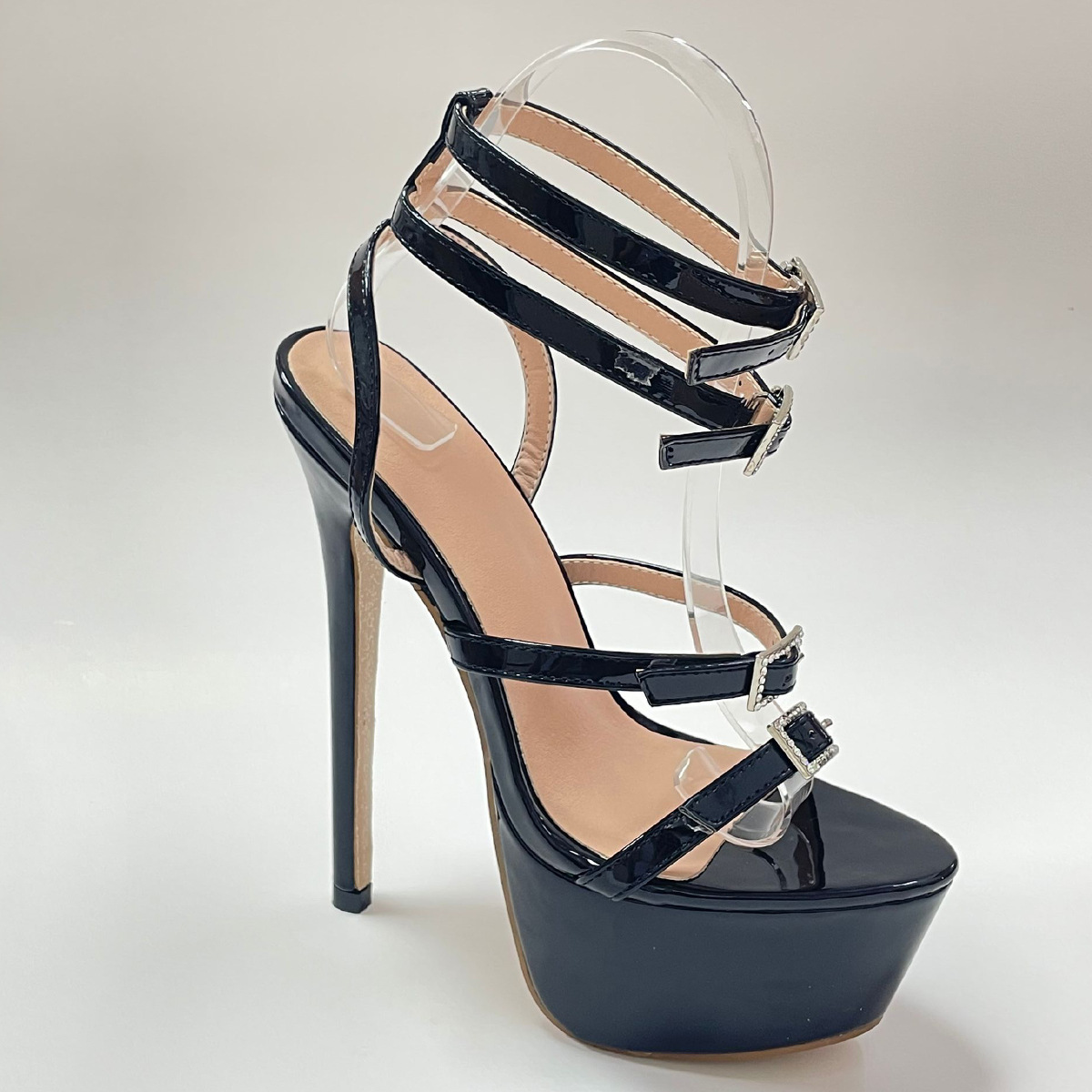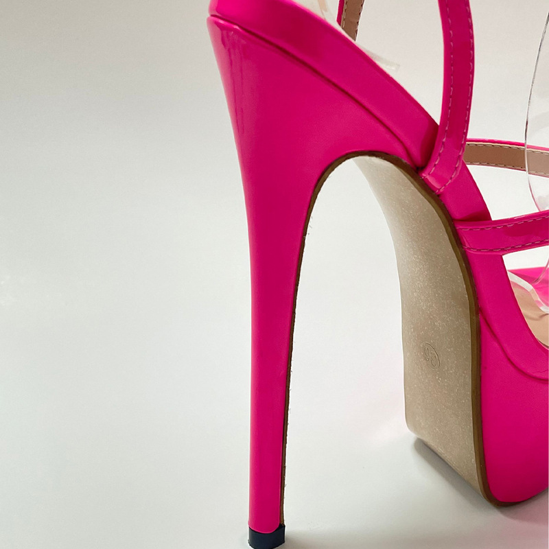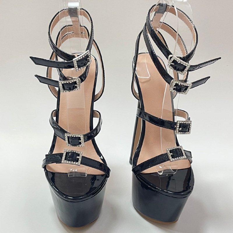 2022 유럽과 미국의 패션 넷 레드 새로운 16CM 하이힐 라인 스톤 버클 스틸레토 힐 샌들 35-42 플러스 사이즈 대외 무역 여성 신발