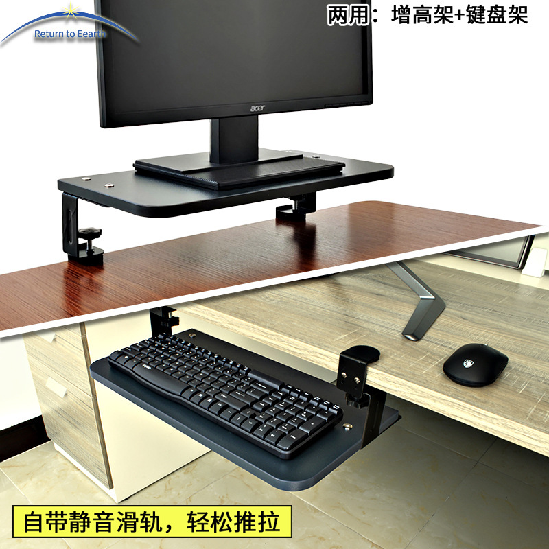 키보드 트레이 펀치 프리 슬라이드 레일 키보드 랙 설치 무료 데스크탑 클립 책상 컴퓨터 브래킷 서랍 마우스 보관 랙
