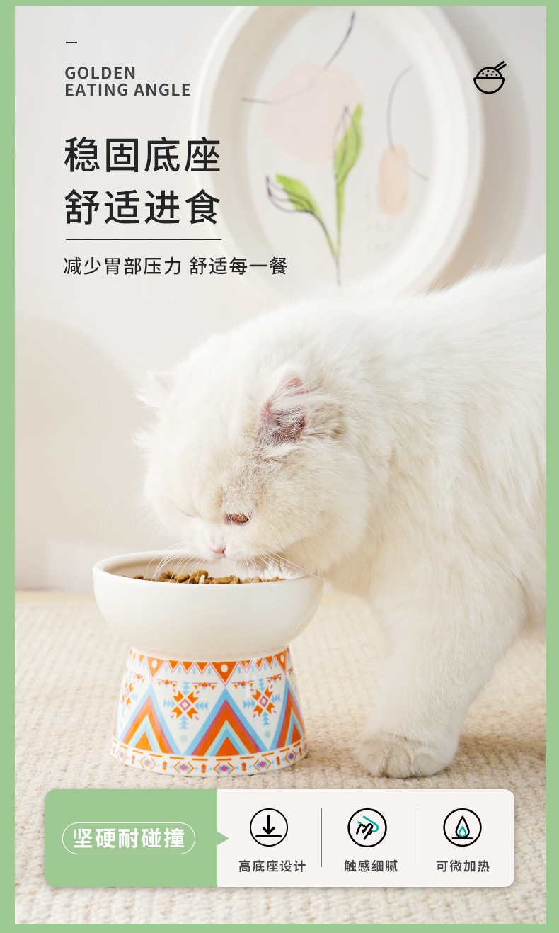 고양이 도자기 그릇 높은 발 고양이 먹이 분지 보호 경추 안티 노크 고양이 먹이 그릇 큰 구경 비 검은 턱 고양이 용품
