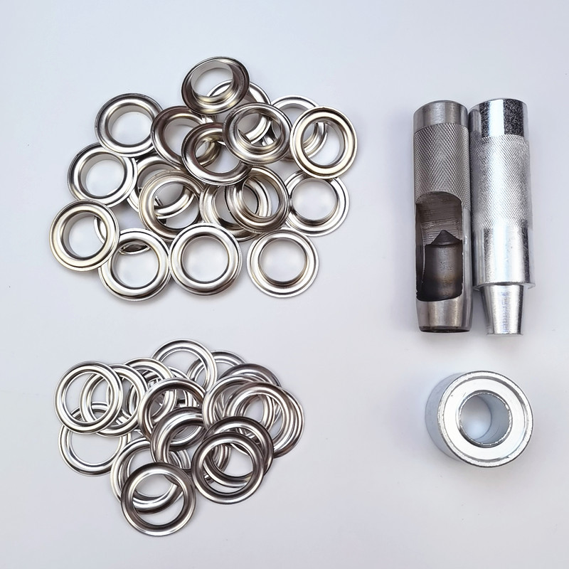 包装内容:100套气眼(一套包含2个部件)+3件安装工具