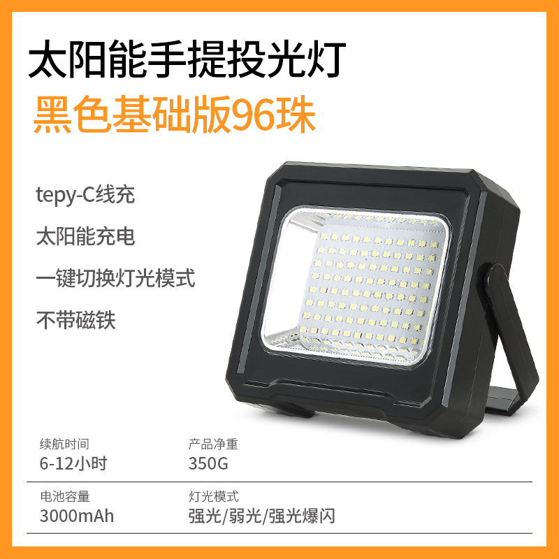 태양열 충전 휴대용 LED 홍수 조명 슈퍼 브라이트 야외 사이트 조명 캠핑 비상 정지 모바일 스포트라이트