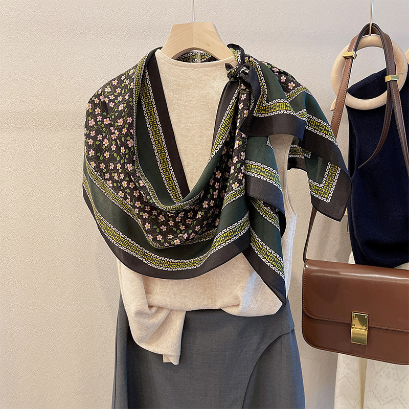 기질 꽃 실크 크레이프 드 중국! 뽕나무 실크 스카프 여성용 봄과 여름 한국식 올매치 롱 스카프 장식 스카프