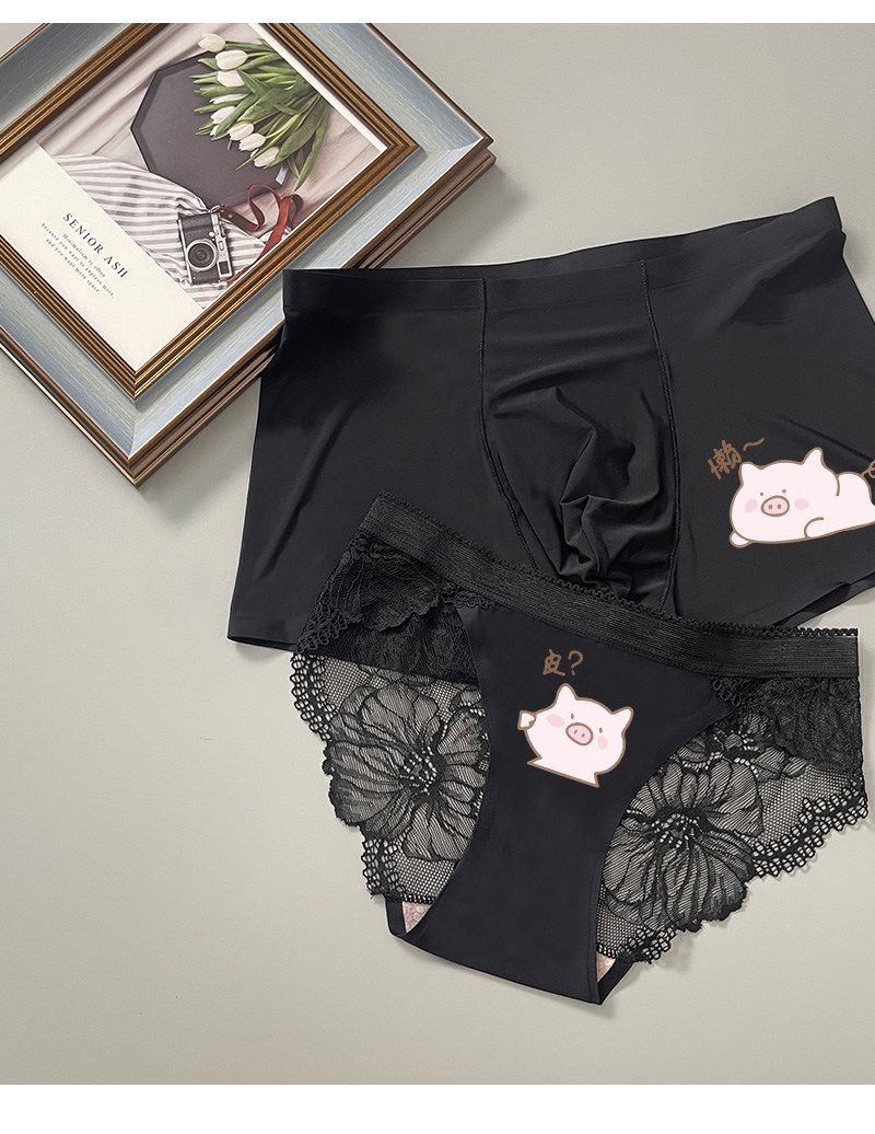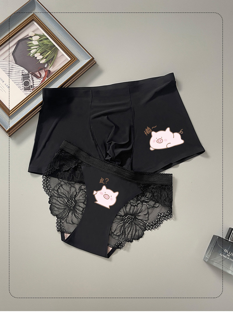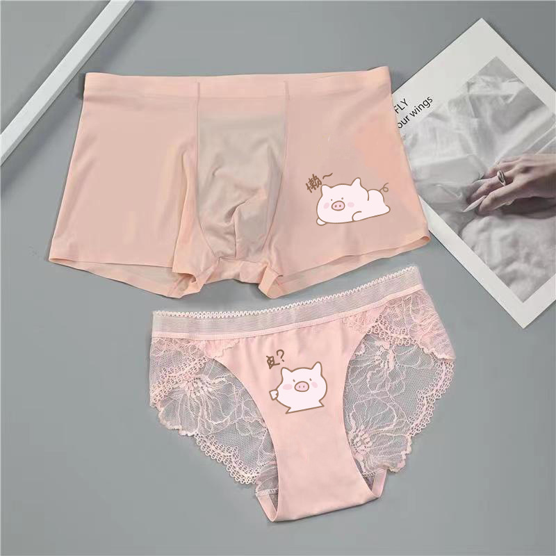 커플 속옷 여름 얼음 실크 커플의 만화 한 남자와 한 여자를위한 귀여운 가벼운 럭셔리 초박형 원활한 얼음 실크 속옷스토어 가기
