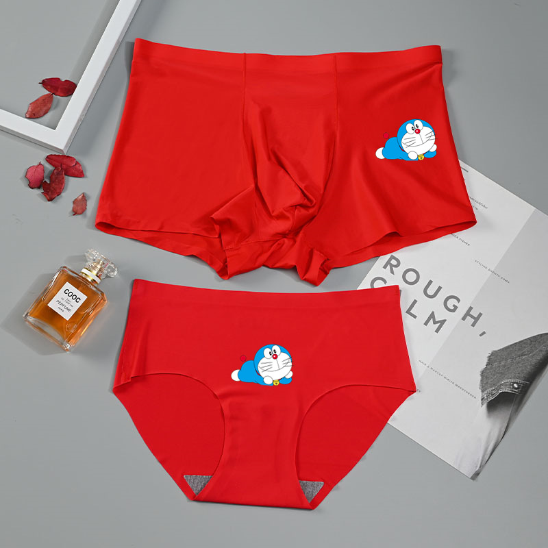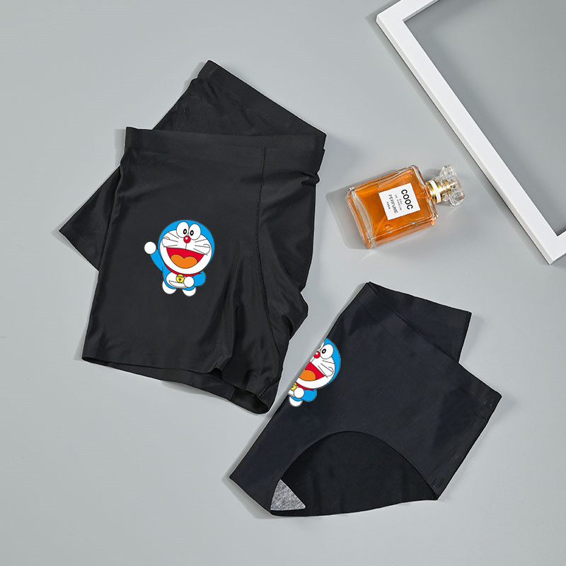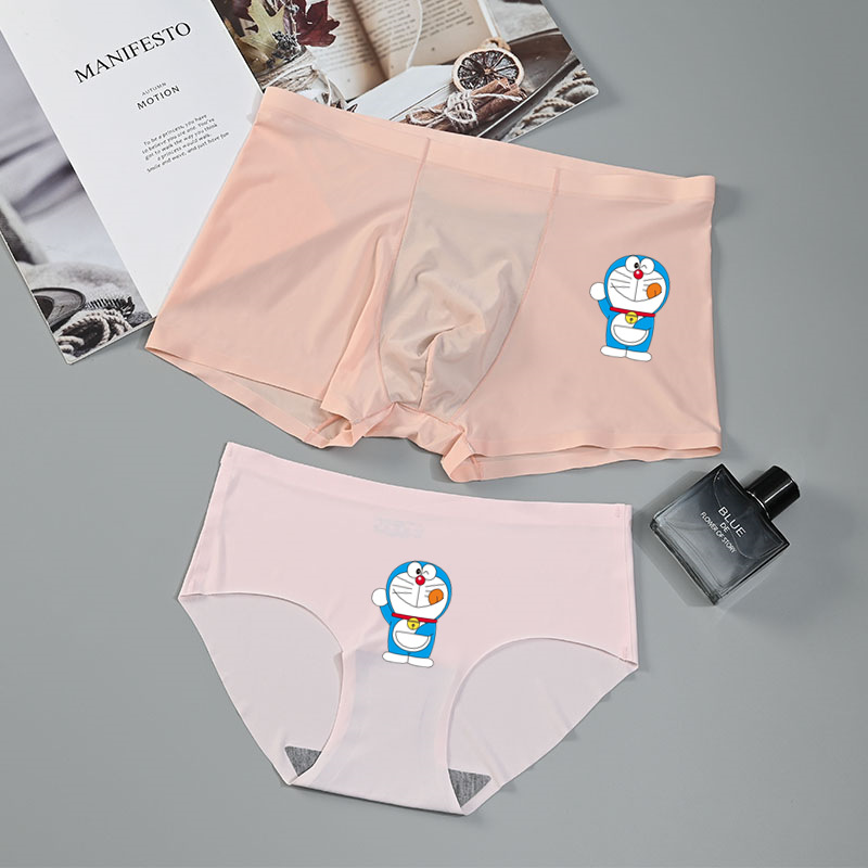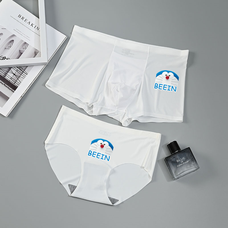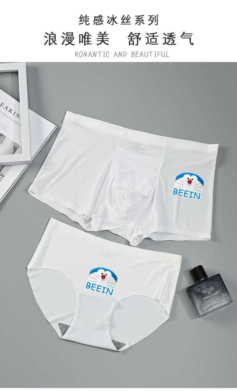 남자와 여자를위한 커플 속옷 여름 2021 새로운 트렌드 도라에몽 화이트 원활한 귀여운 만화 아이스 실크