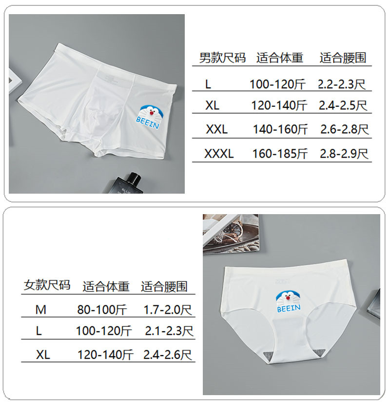 남자와 여자를위한 커플 속옷 여름 2021 새로운 트렌드 도라에몽 화이트 원활한 귀여운 만화 아이스 실크스토어 가기