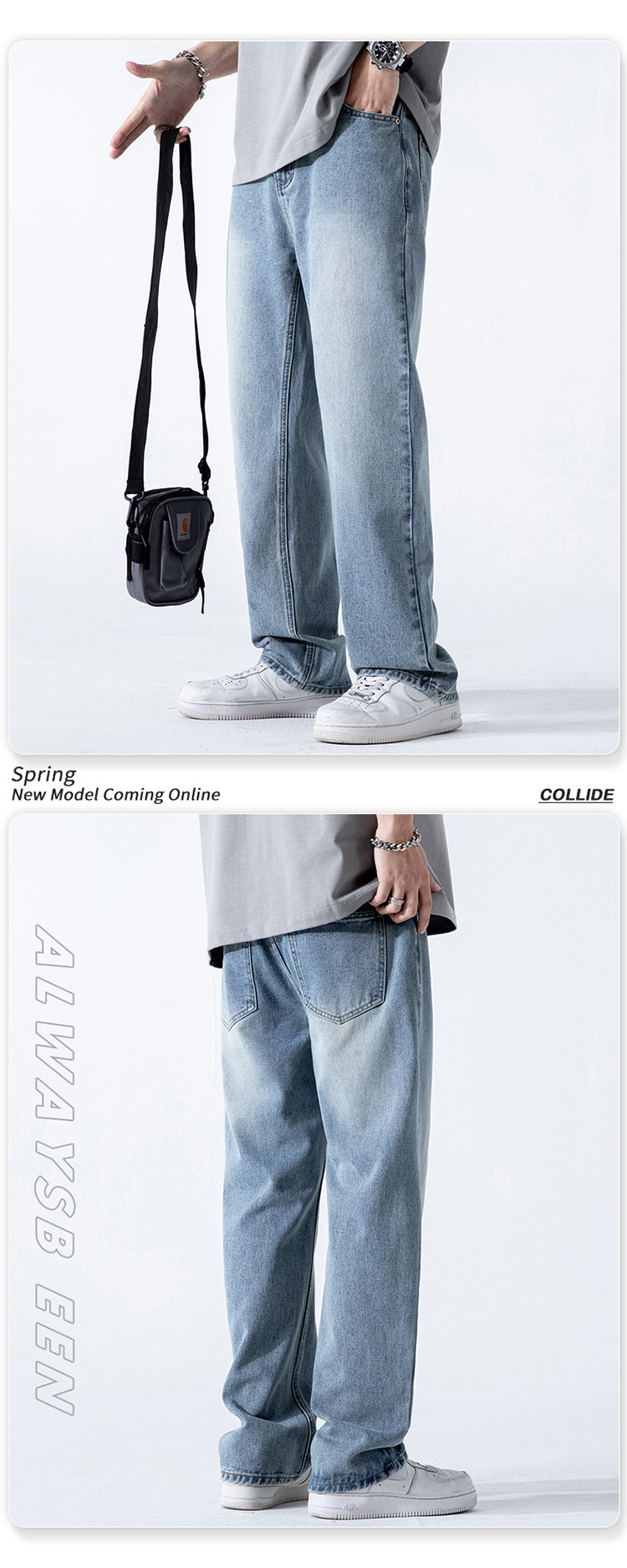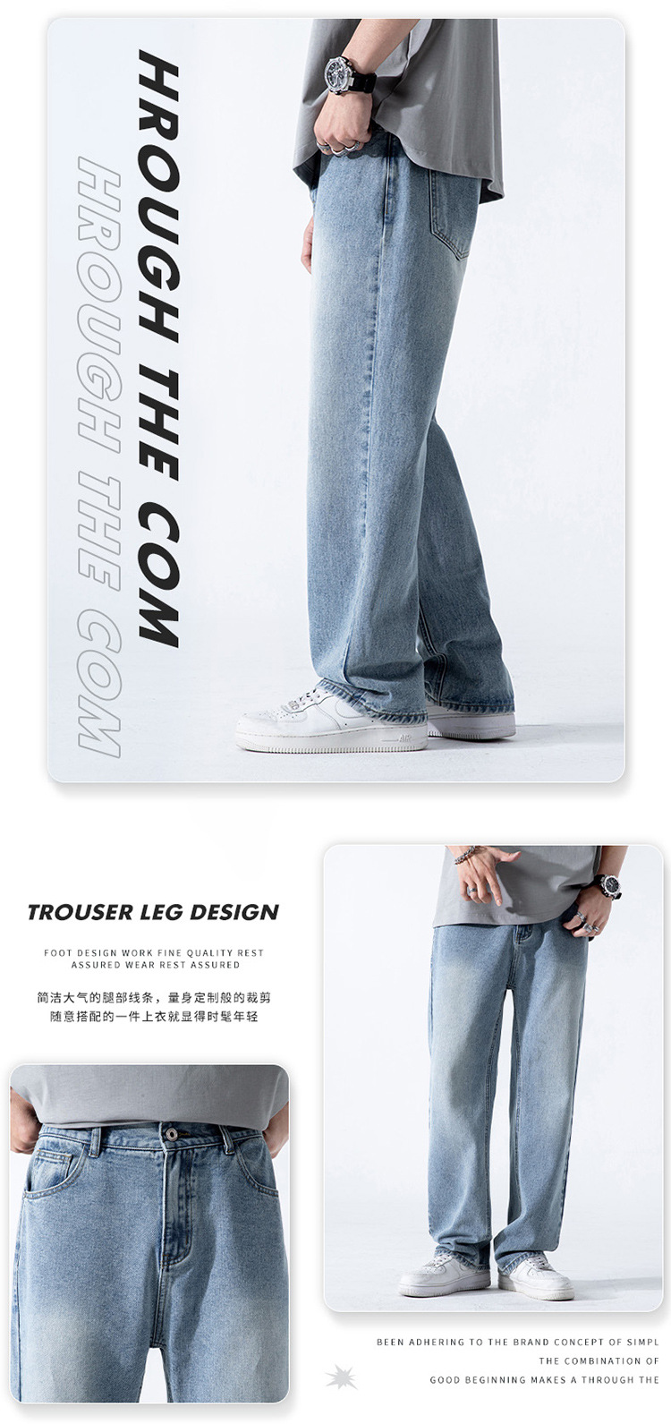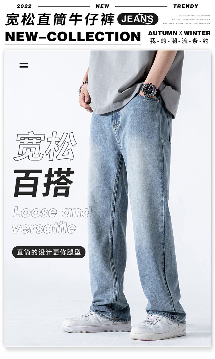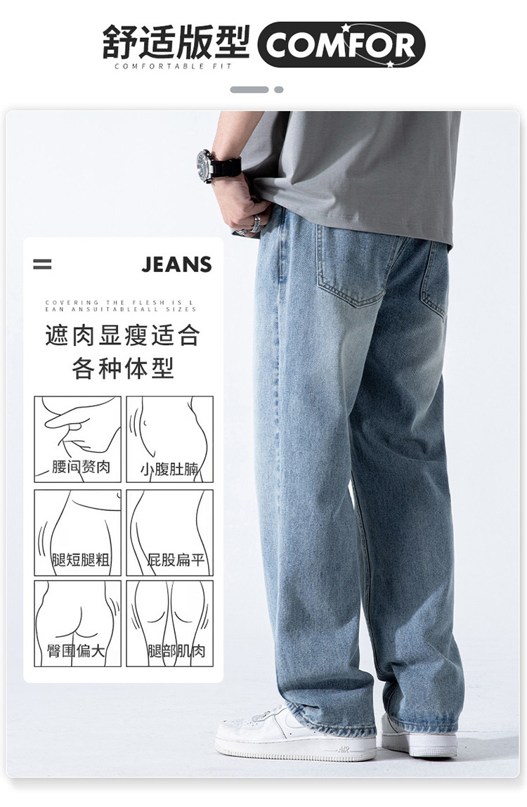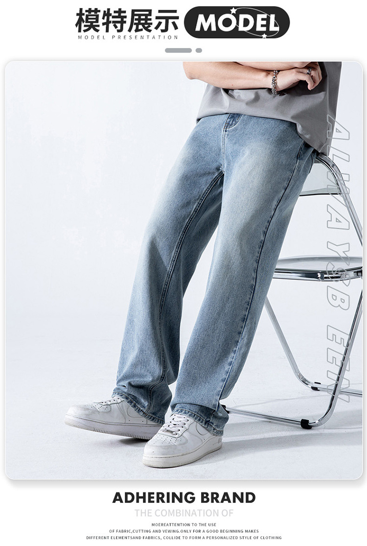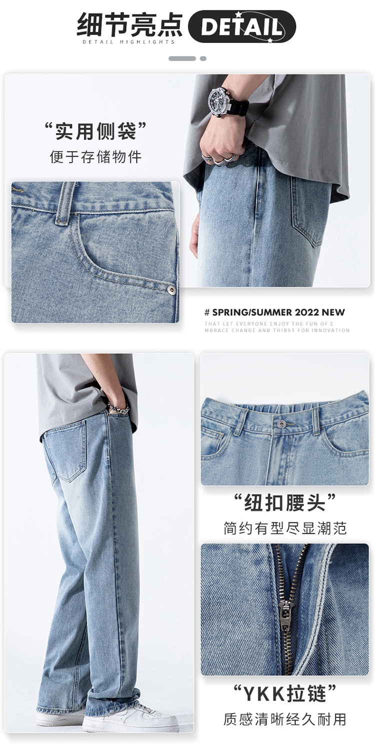 여름 하이 스트리트 레트로 아메리칸 스타일 청바지 남성용 INS 트렌디 브랜드 느슨한 스트레이트 워싱 드롭 펜던트 와이드 레그 팬츠 남성용스토어 가기