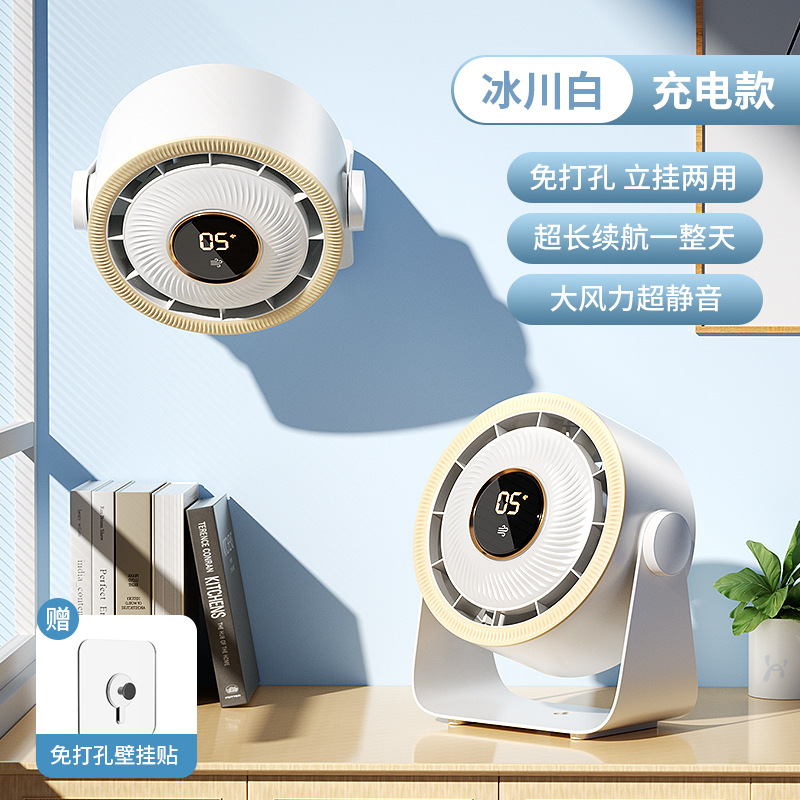 • 충전식 F76 디지털 디스플레이 데스크탑 팬 * 흰색 * 수직 및 매달기 * 충전식 모델 4000mAh