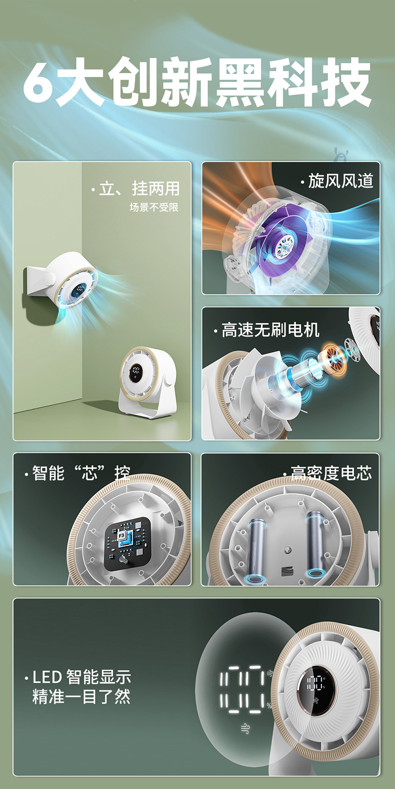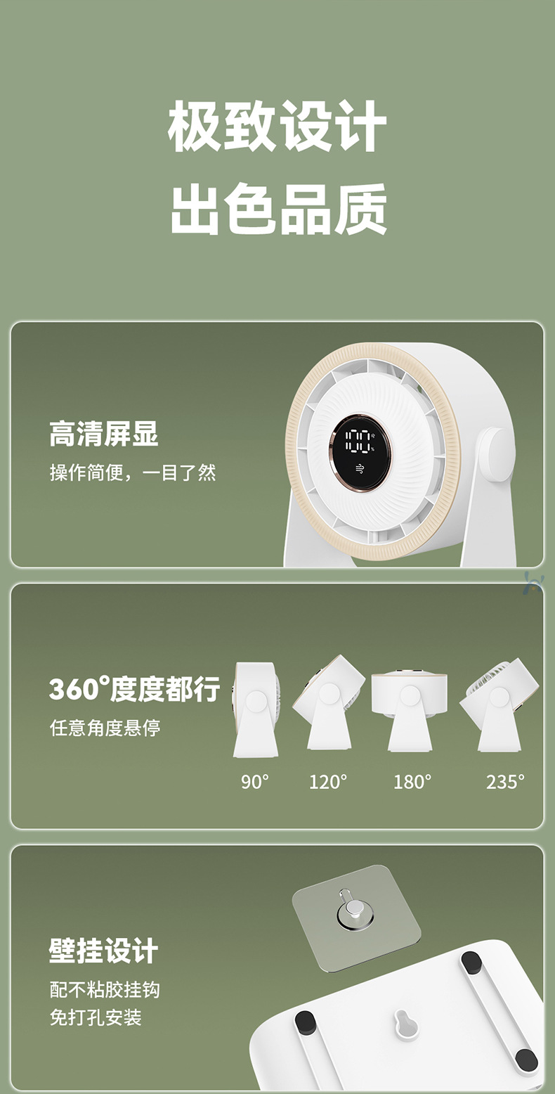 • 충전식 F82 데스크탑 순환 팬★5단 조절 + 조명★하오위에바이*2400mAh