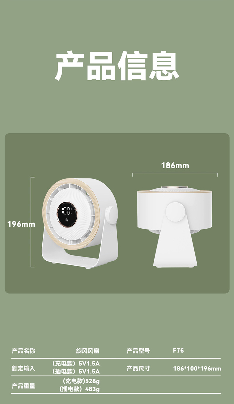 • 플러그인 F76 디지털 디스플레이 데스크탑 팬 *흰색*수직 및 수직 사용