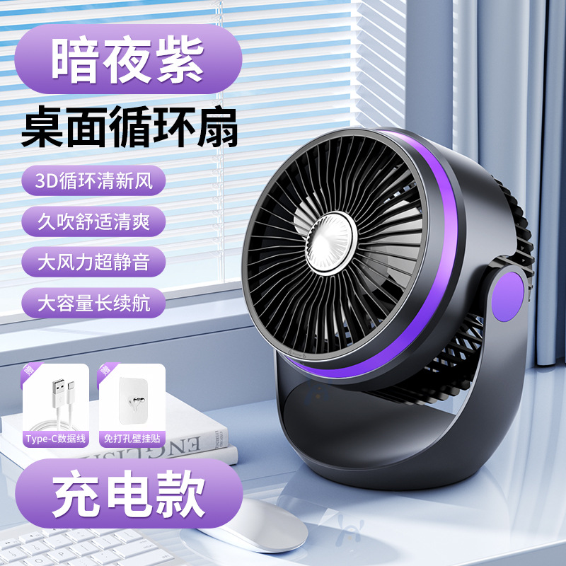 • 충전식 K2 디지털 디스플레이 데스크탑 순환 팬 * 보라색 회색 * 수직 및 수직 이중 사용 * 2000mAh