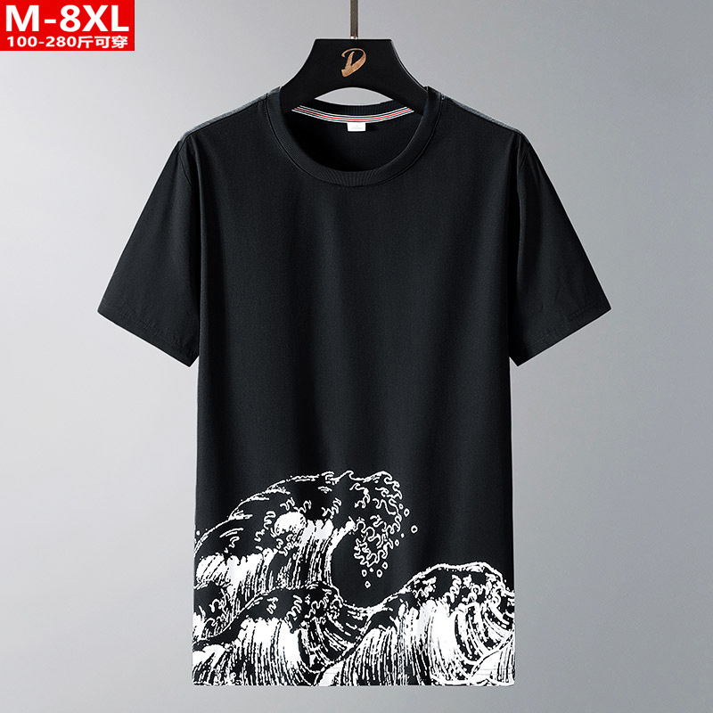 여름 패션 남자의 통기성 속건 아이스 실크 프린트 티셔츠 통통한 대형 플러스 사이즈 느슨한 스포츠 캐주얼 반팔 티셔츠