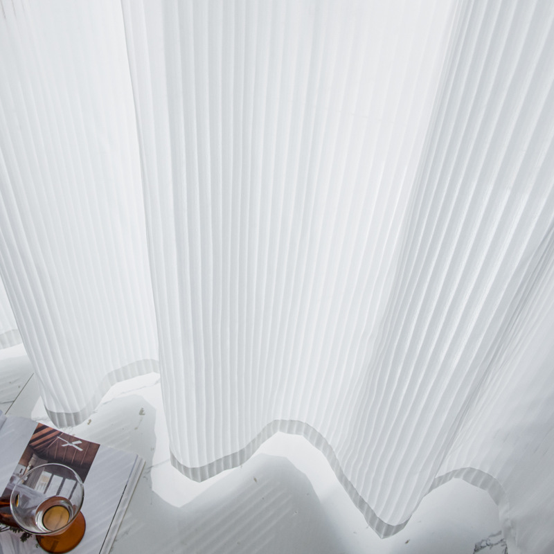 세로 루버 쉬폰 흰색 원사 반투명 반투명 거즈 커튼 북유럽 거실 발코니 침실 거즈 빛과 그림자 창 스크린 완제품