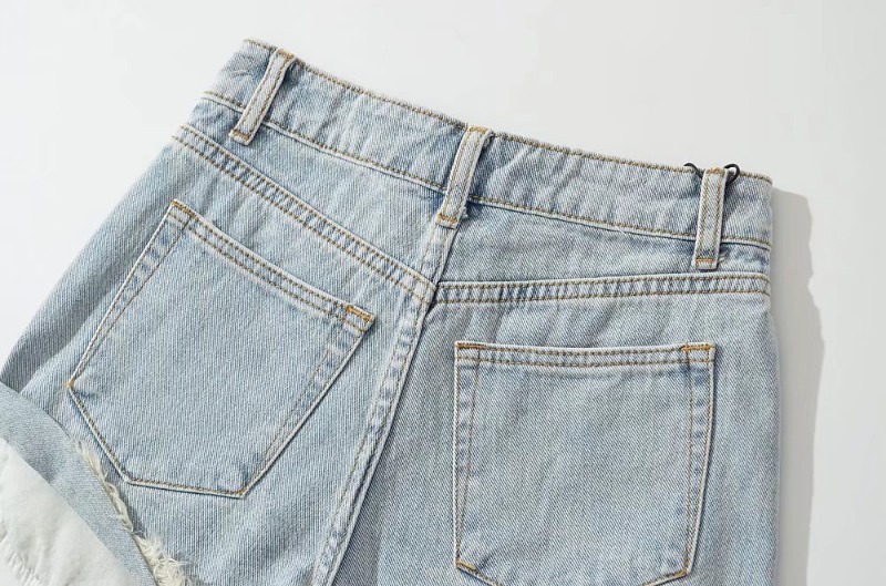 유럽과 미국 여성의 2022 여름 새로운 스트레이트 레그 팬츠 헤어 및 사이드 오픈 포켓 디자인 청바지 짧은 핫 팬츠 도매스토어 가기