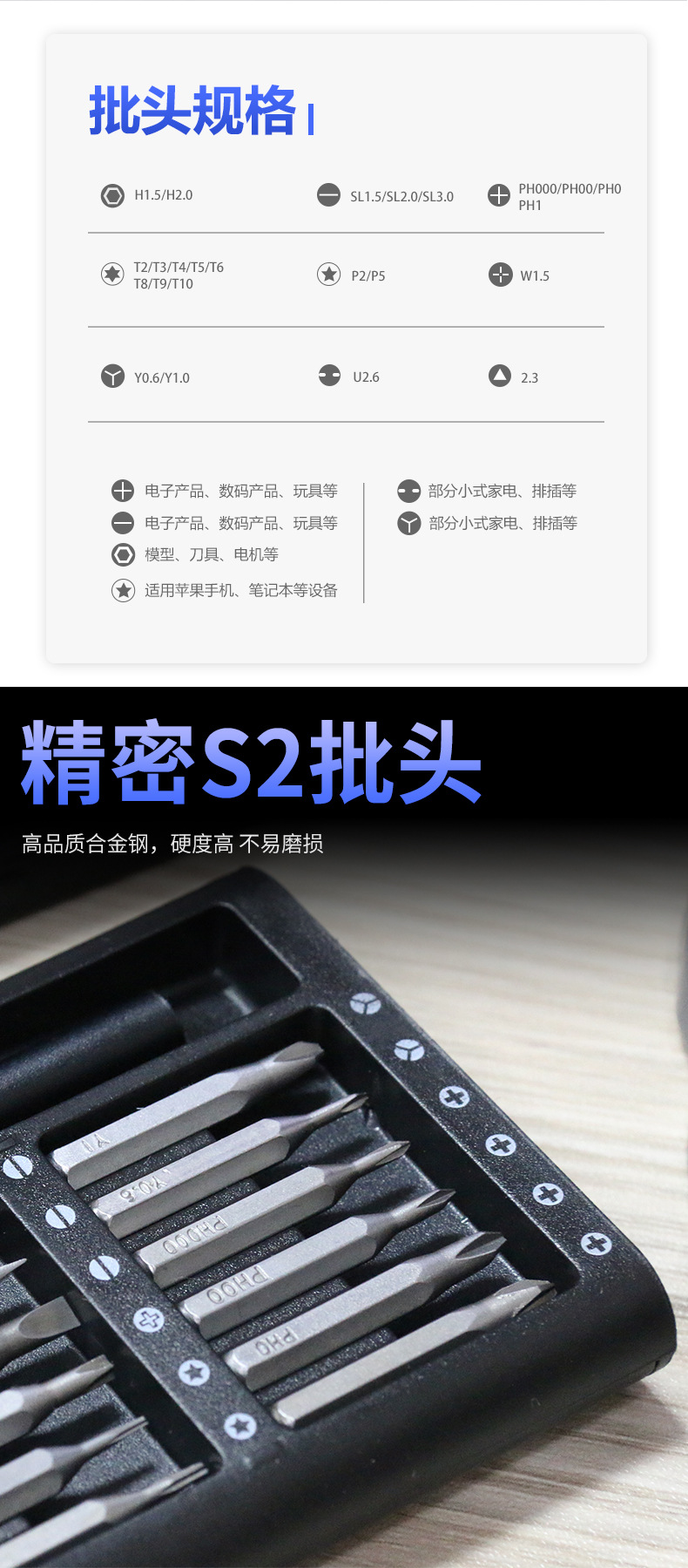 공장 24 대 1 드라이버 세트 S2 배치 헤드 알루미늄 합금 핸들 정밀 드라이버 휴대 전화 수리 도구스토어 가기