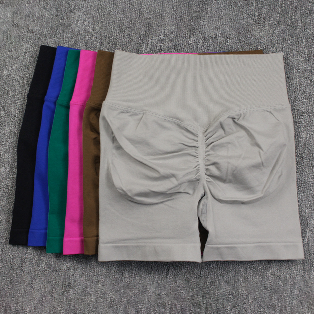 원활한 주름 복숭아 엉덩이 요가 바지 여성용 하이 웨이스트 복부 여름 사이클링 스포츠 달리기 피트니스 반바지