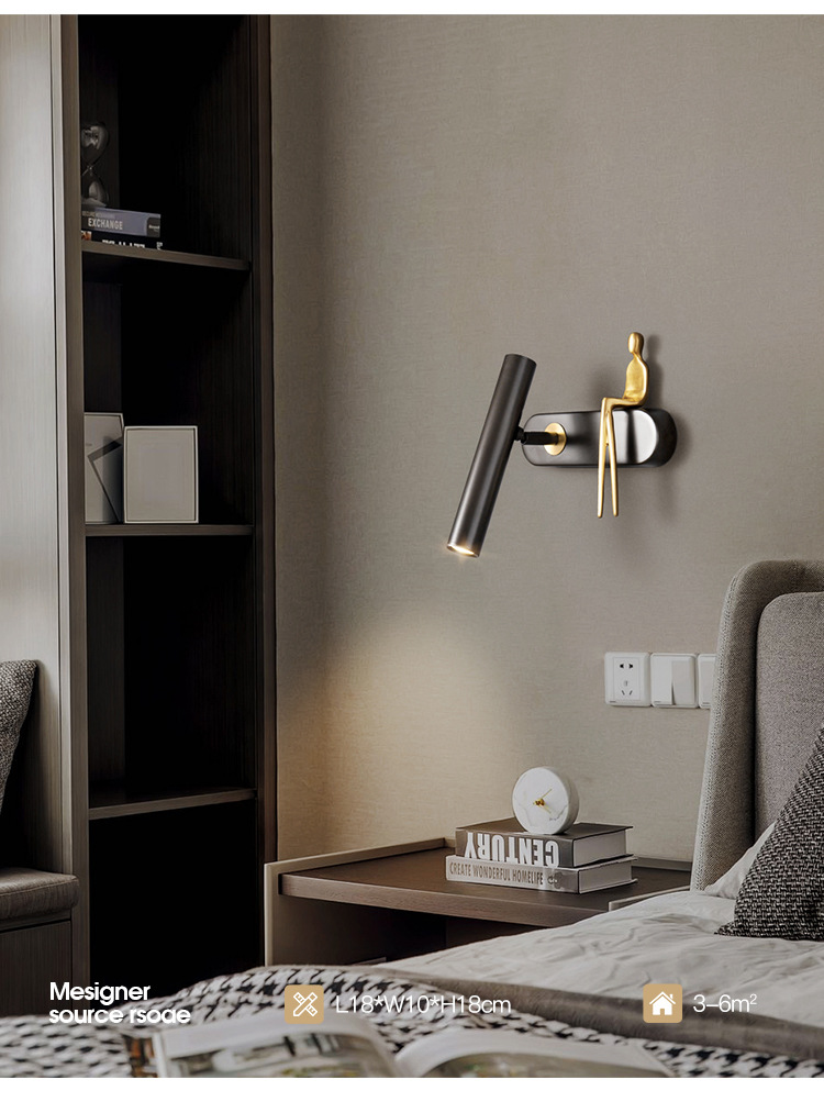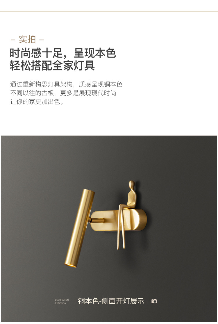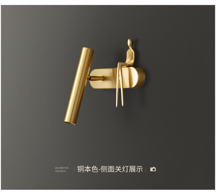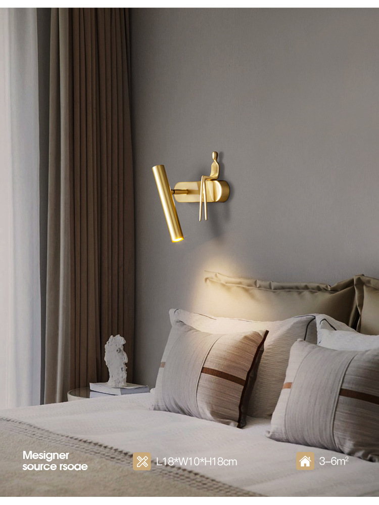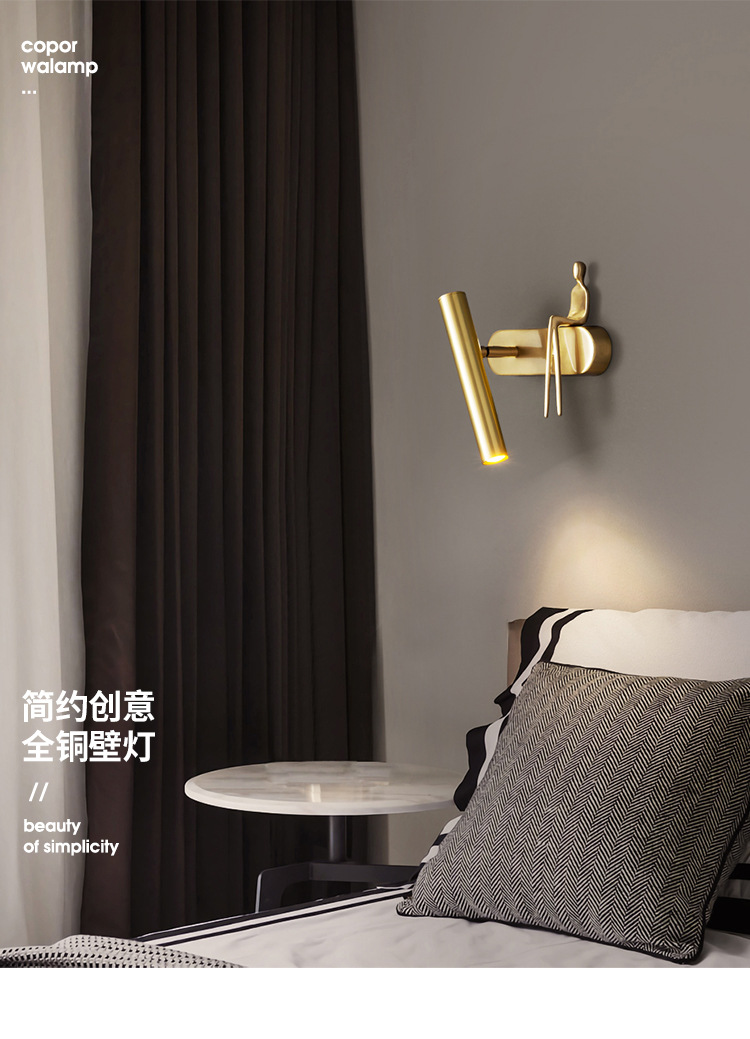 모든 구리 벽 램프 북유럽 간단한 창조적 인 성격 예술적 그림 황동 회전 빛 고급 디자이너 침실 침대 옆 램프