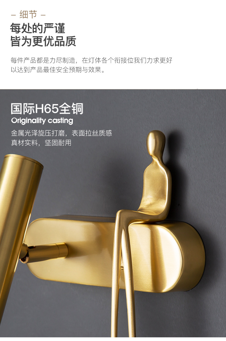 모든 구리 벽 램프 북유럽 간단한 창조적 인 성격 예술적 그림 황동 회전 빛 고급 디자이너 침실 침대 옆 램프스토어 가기