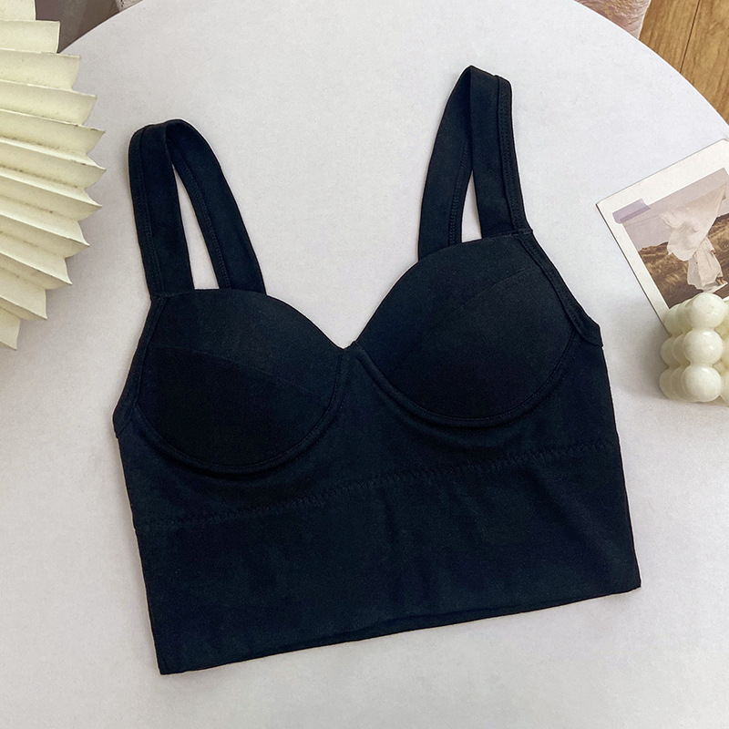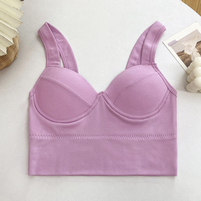 편안한 스레드 한국 스타일 끈이없는 아름다운 등 작은 조끼 여성용 겉옷을 입고 넓은 어깨 스트랩 포장 가슴 모여 속옷 스틸 링없이