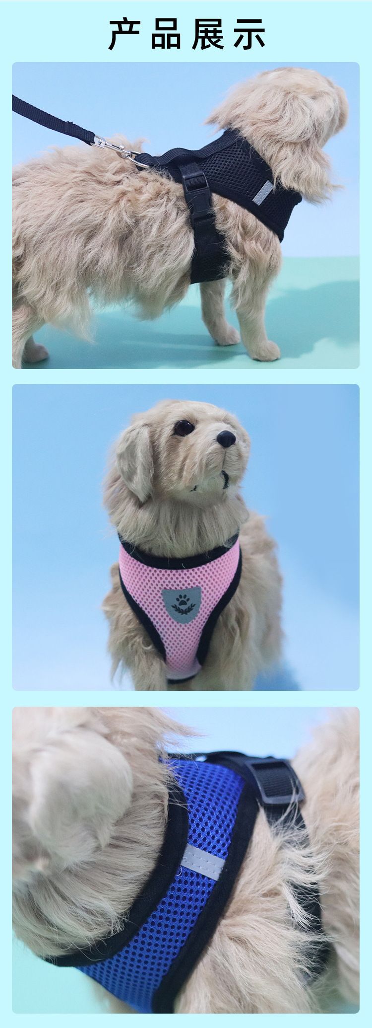 국경 간 개 로프 애완 동물 가슴 스트랩 개 견인 로프 조끼 스타일 안티 브레이크 프리 작은 개 걷는 밧줄 개 체인 공급스토어 가기