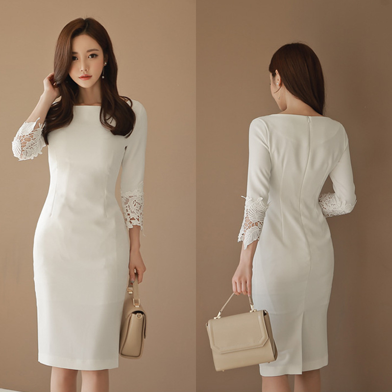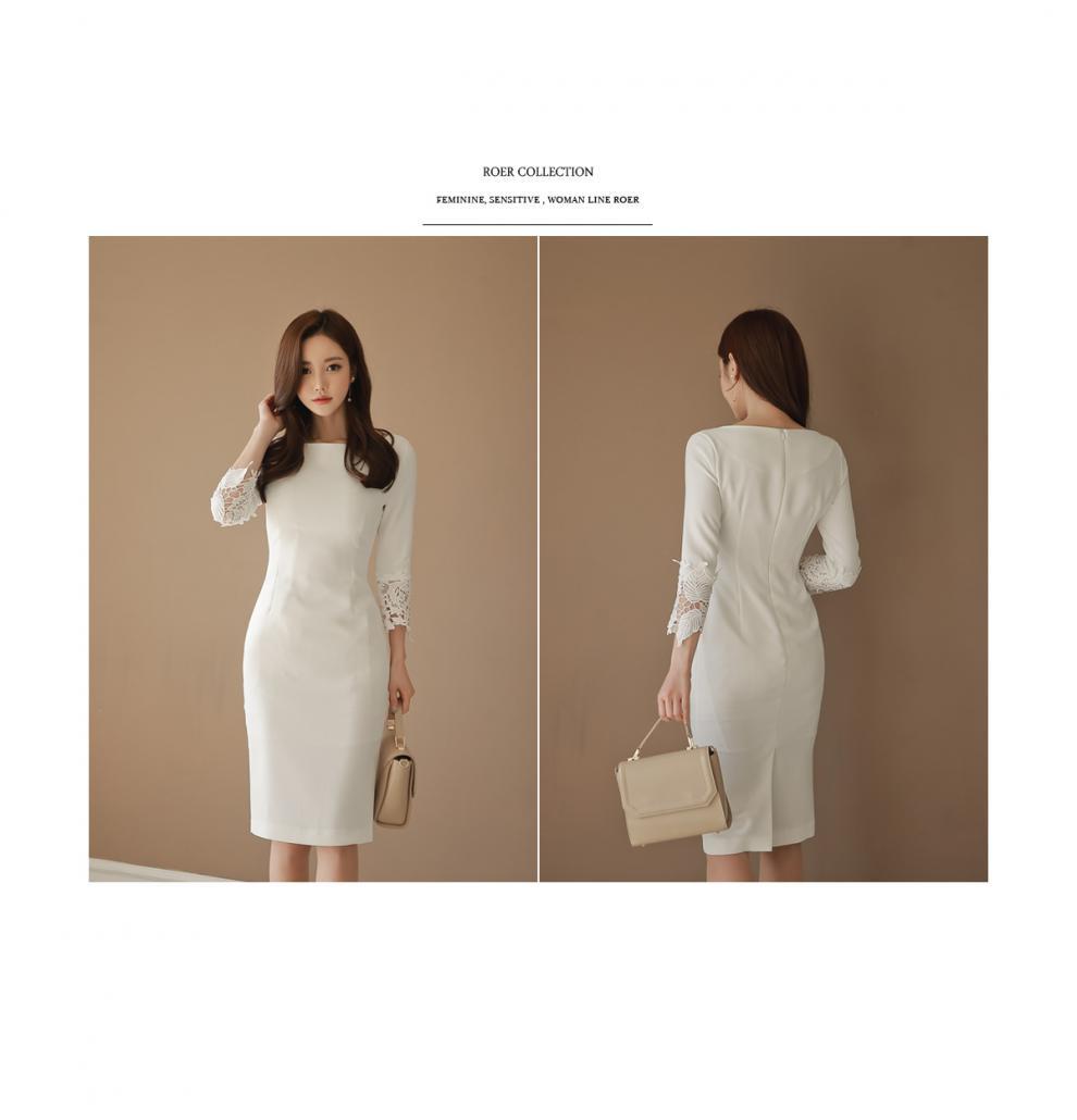 2025년 봄/여름 신상 여성 레이스 드레스, 슬림핏 7부 소매, 힙을 감싸는 우아한 원피스스토어 가기