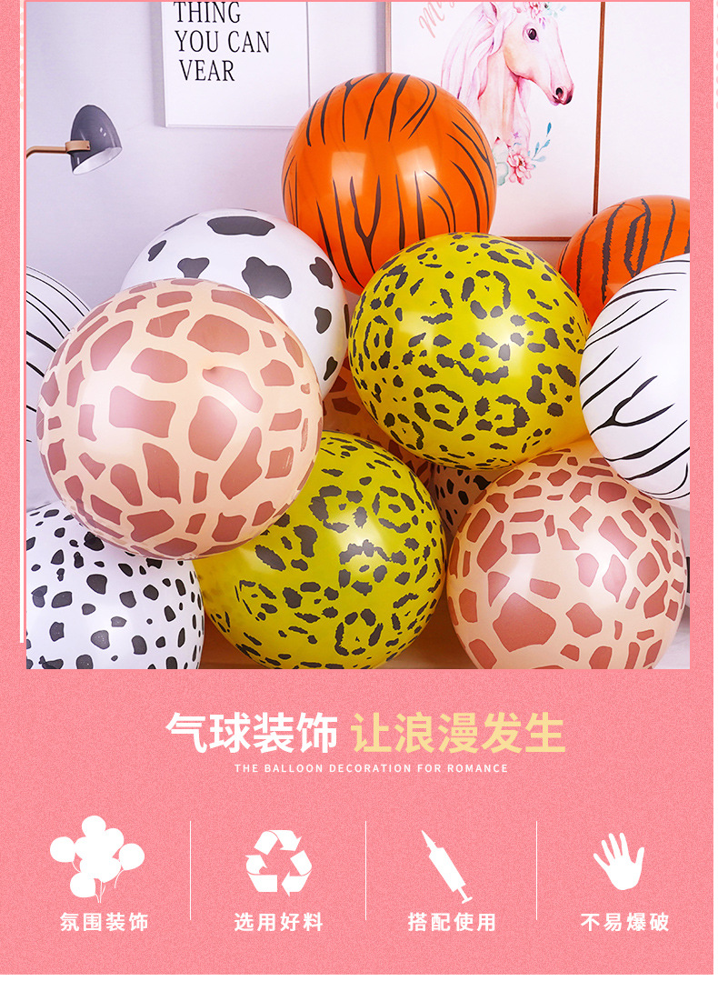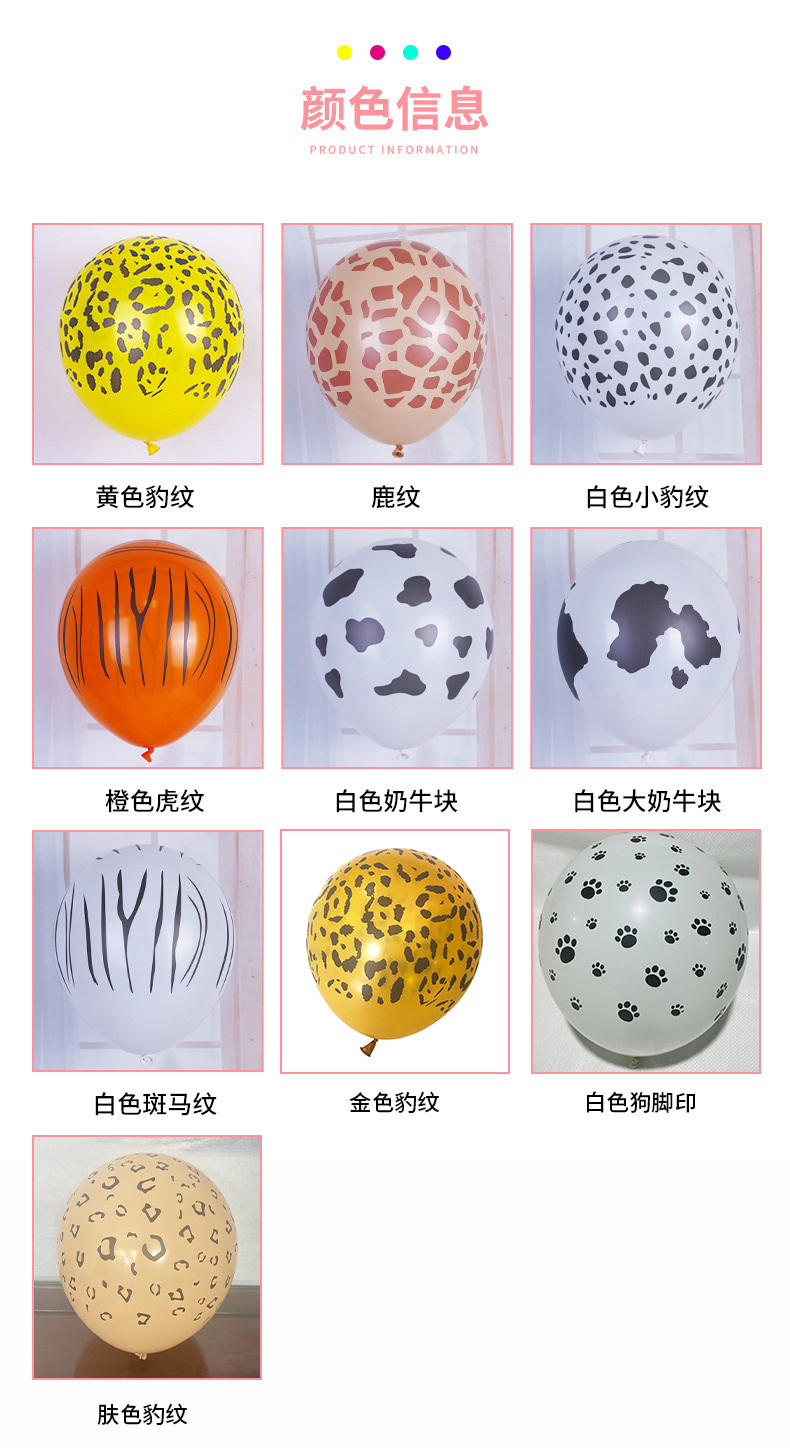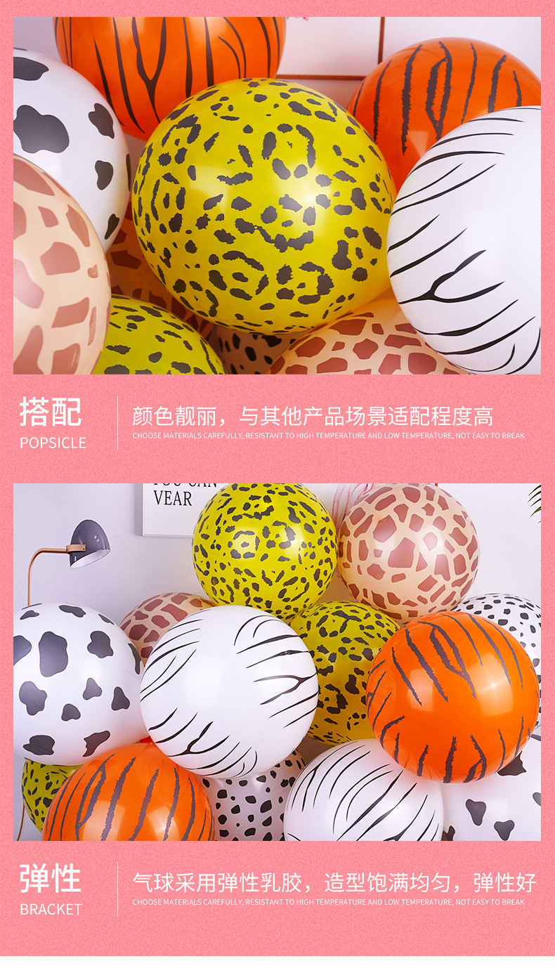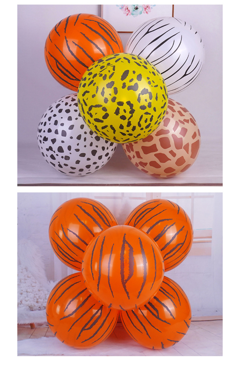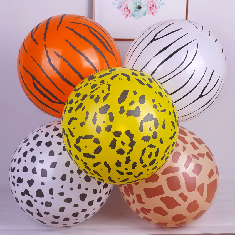 12inch 정글 동물 줄무늬 풍선 다섯 면 인쇄 만화 표범 무늬 소 점무늬 풍선 야시장 판매스토어 가기