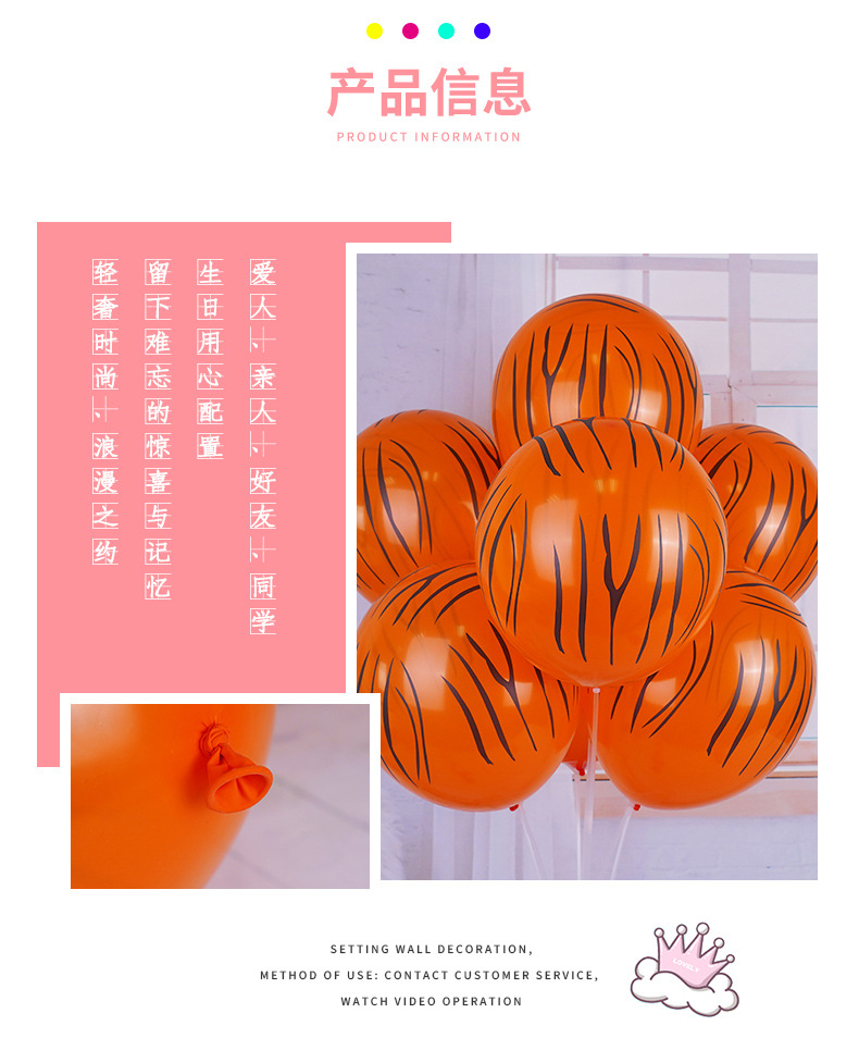 • 12inch 동물 줄무늬 혼합 50개/팩(랜덤 패턴)