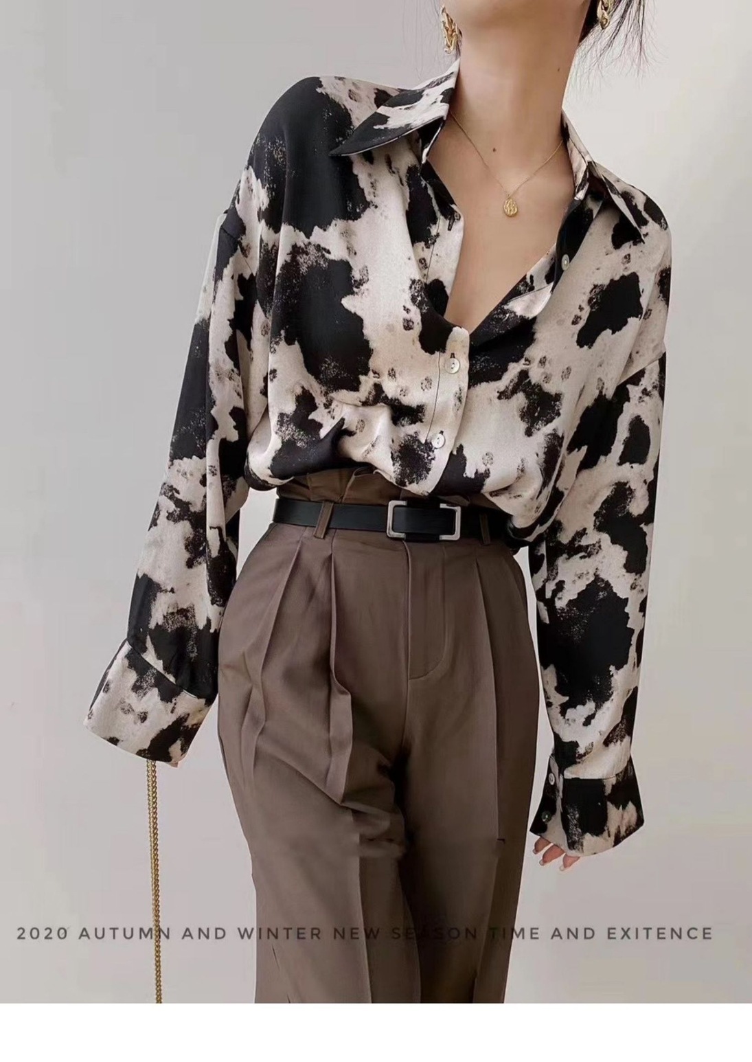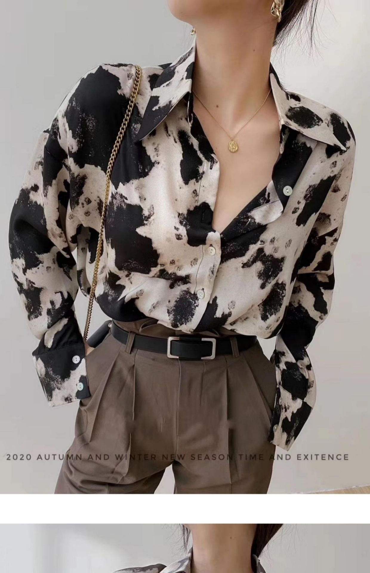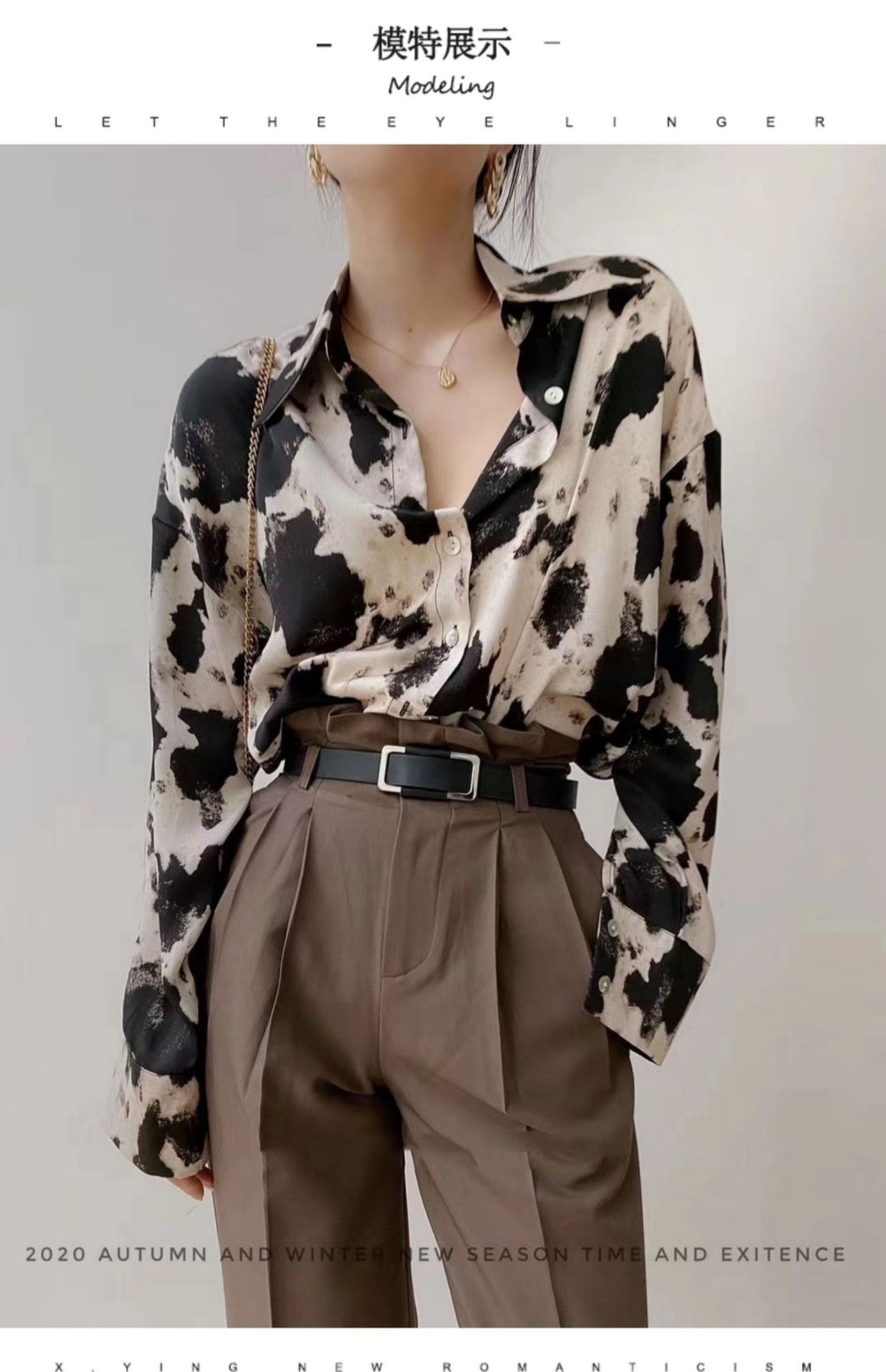 고급 셔츠 빅 브랜드 레오파드 무늬 우아한 탑 봄과 가을 긴 소매 셔츠 여자의 겉옷 모든 일치 디자인 감각 틈새 빛 성숙스토어 가기