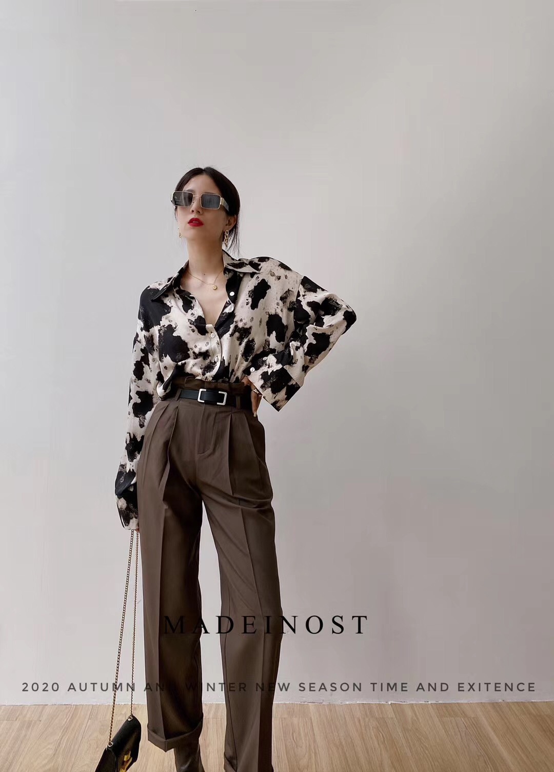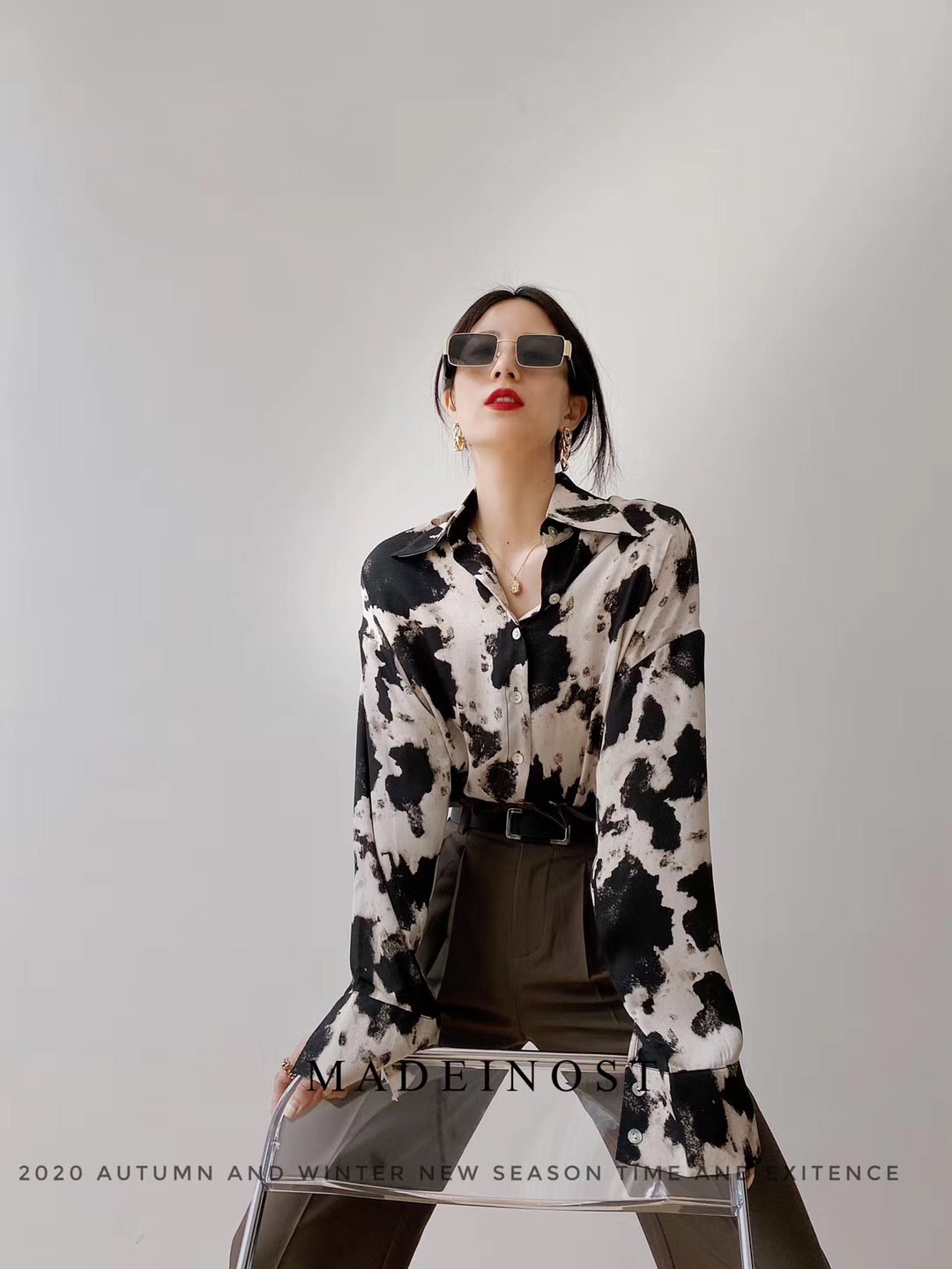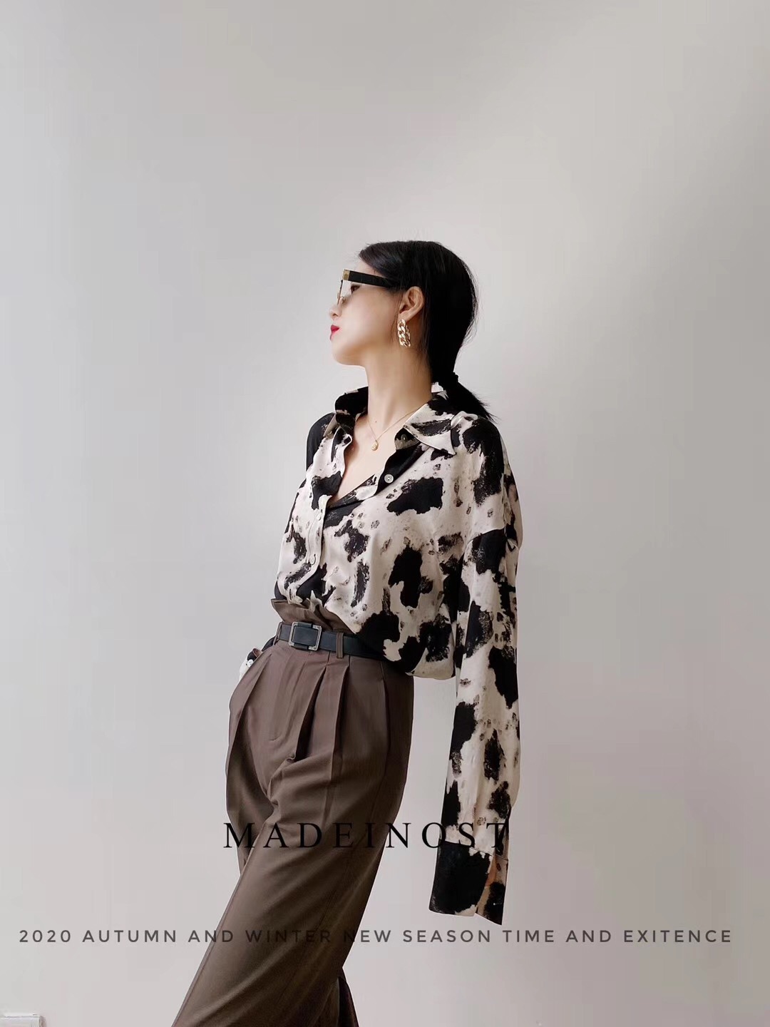 고급 셔츠 빅 브랜드 레오파드 무늬 우아한 탑 봄과 가을 긴 소매 셔츠 여자의 겉옷 모든 일치 디자인 감각 틈새 빛 성숙스토어 가기