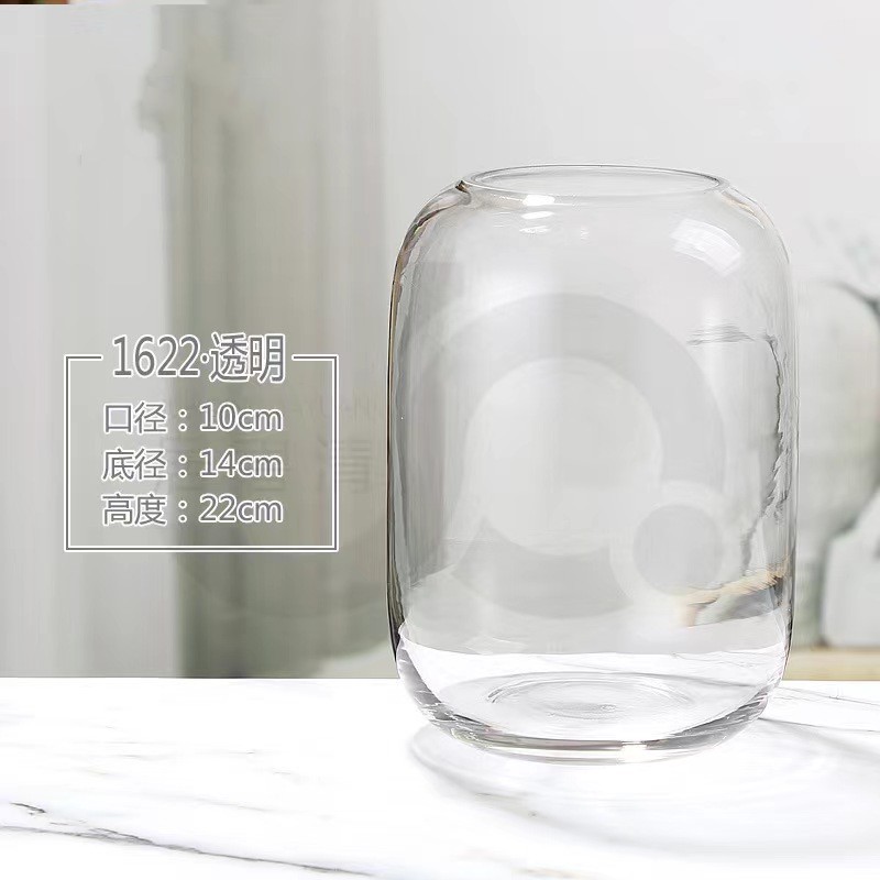간단한 큰 배꼽 유리 꽃병 연기 회색 거실 바닥 꽃 병 데스크탑 장식 장식품 꽃병 도매스토어 가기