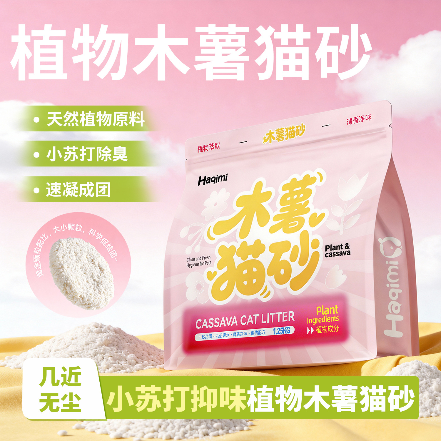 • 순수 카사바 고양이 모래 1.25kg