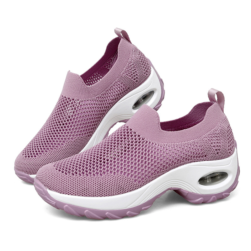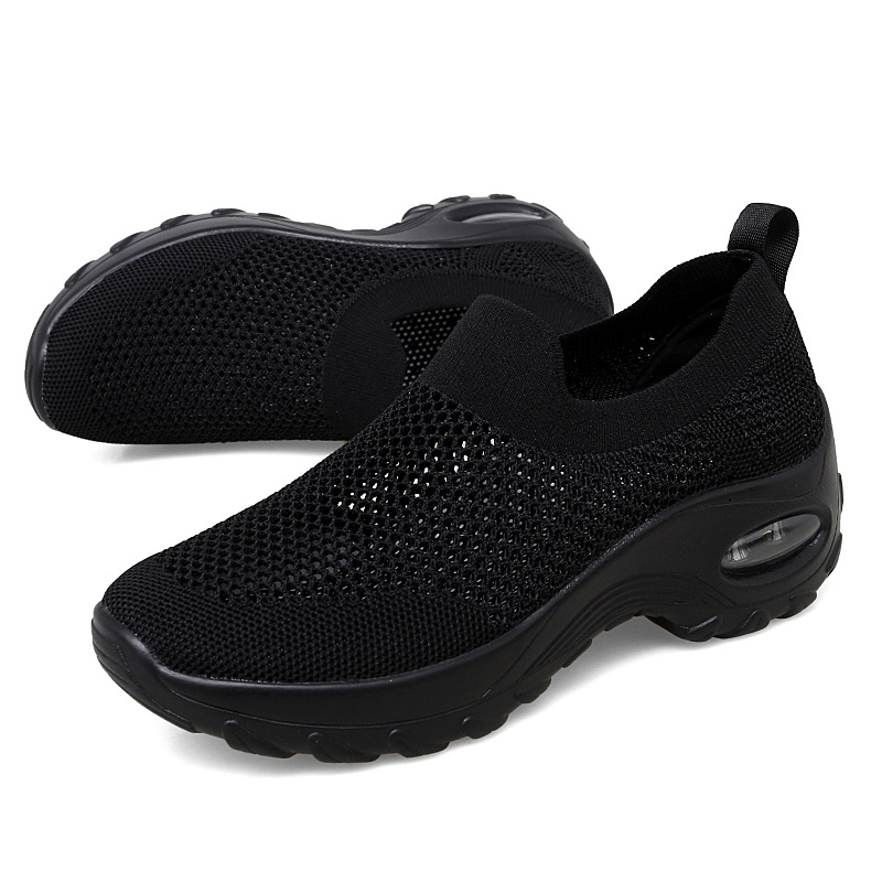 2022 새로운 크로스 보더 블랙 작업화 경량 슬립 온 패션 운동화 메쉬 중공 통기성 캐주얼 여성 신발