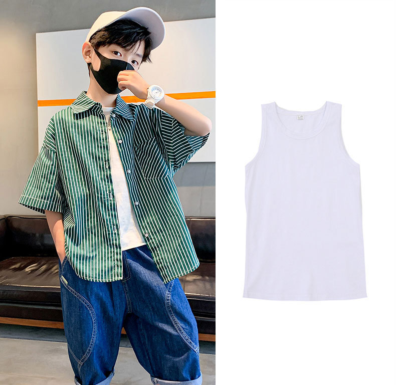 소년 반팔 셔츠 순면 아동복 스트라이프 탑 트렌디한 대형 아동 여름 옷 2025 새로운 아동 셔츠 트렌디 스타일