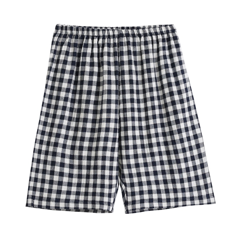 MUJI 일본식 좋은 반바지 여성 캐주얼 바지 순면 격자 무늬 복서 남성 겉옷 짧은 잠옷 바지 4 코너 바지스토어 가기