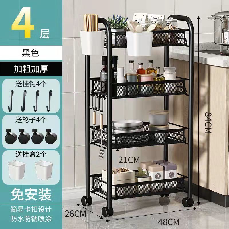 모바일 스토리지 랙 바닥 다층 주방 스토리지 랙 선반 욕실 침실 스토리지 트롤리 스토리지 랙