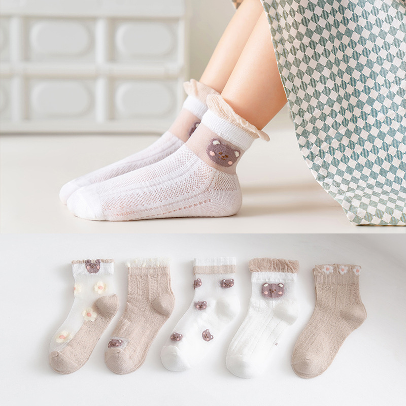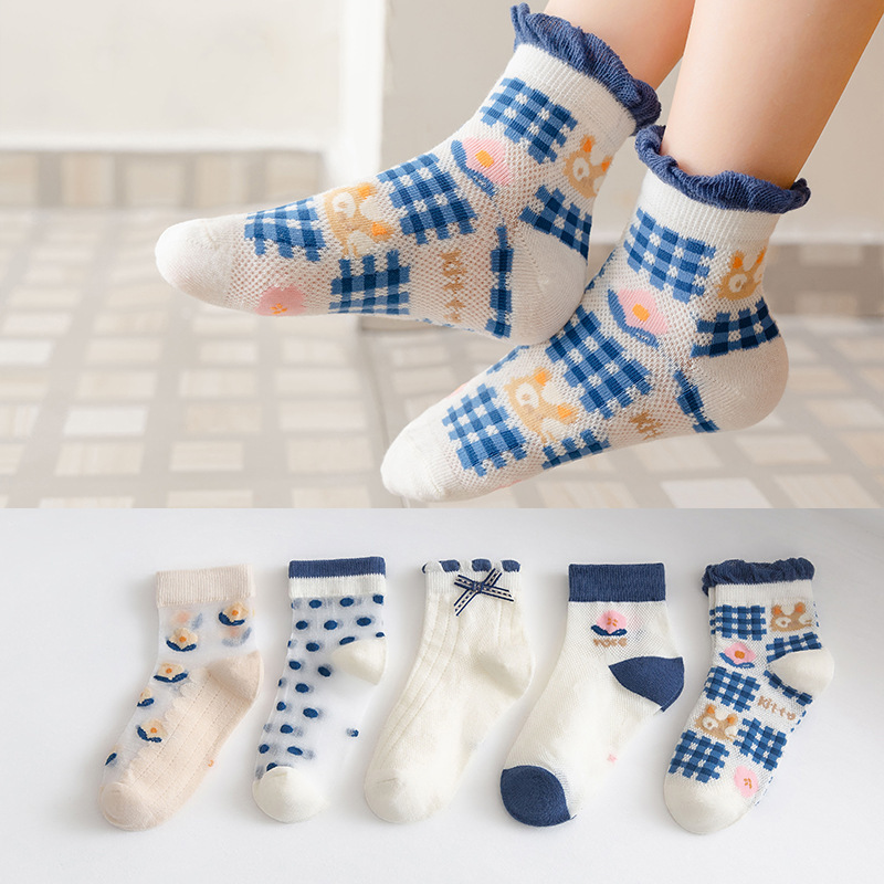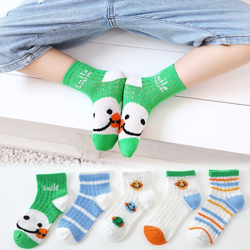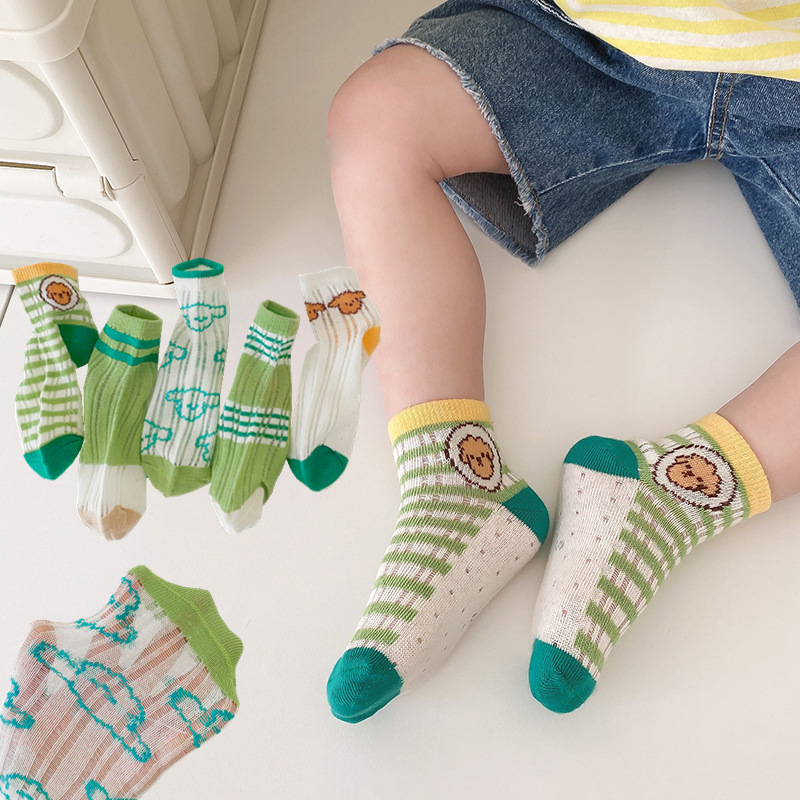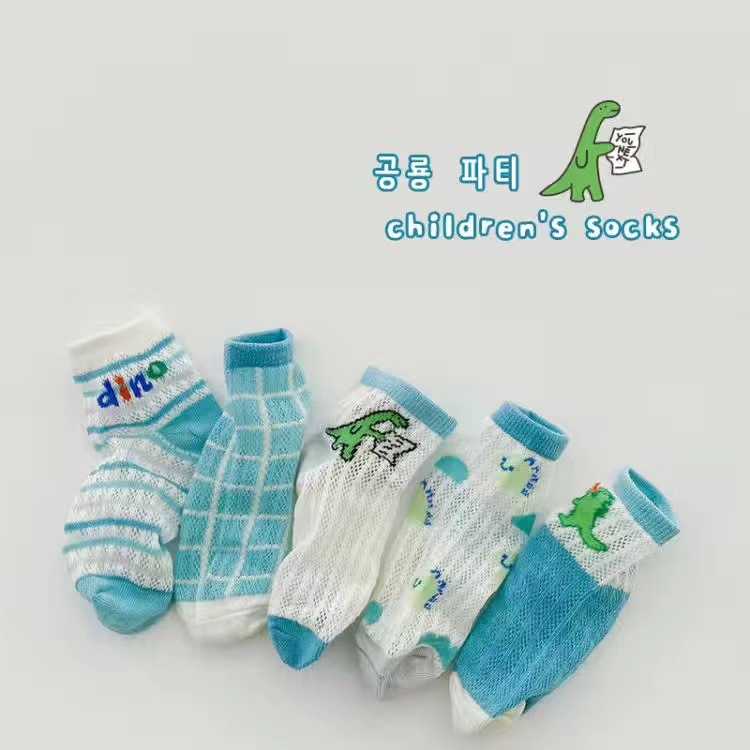 여름 얇은 어린이 양말 소년과 소녀 통기성 메쉬 면화 양말 아기 봄과 가을 만화 강아지 소년 여름