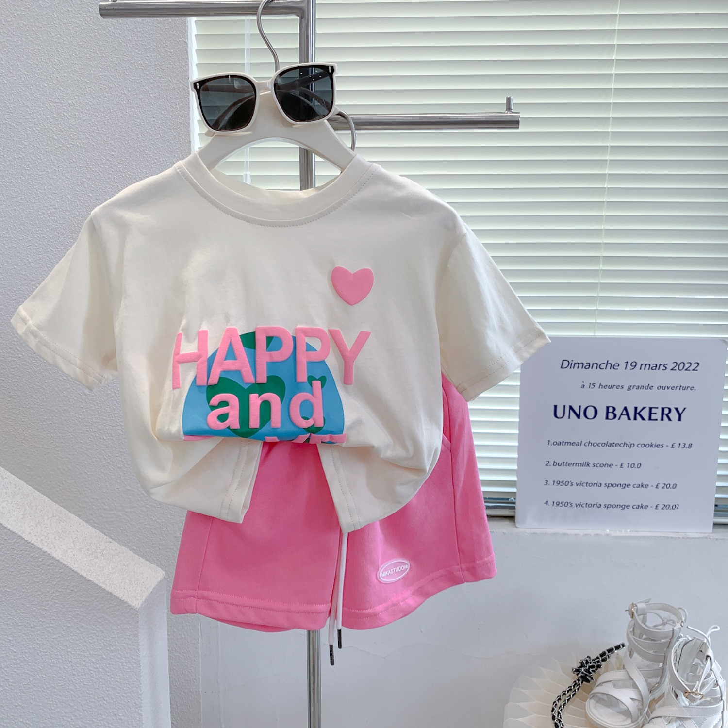 여아 반팔 스포츠 세트 2023 여름 새로운 캐주얼 레터 프린트 티셔츠 반바지 투피스 아동용 38097