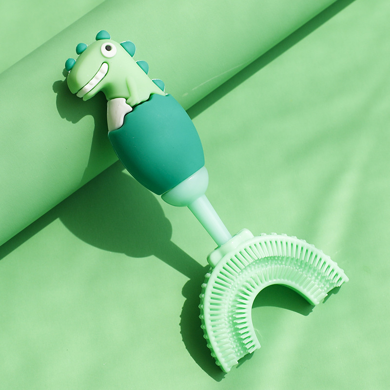 어린이 만화 칫솔 작은 공룡 U 자형 칫솔 3-8 세 아기 U 자형 수동 특수 실리콘 부드러운 칫솔