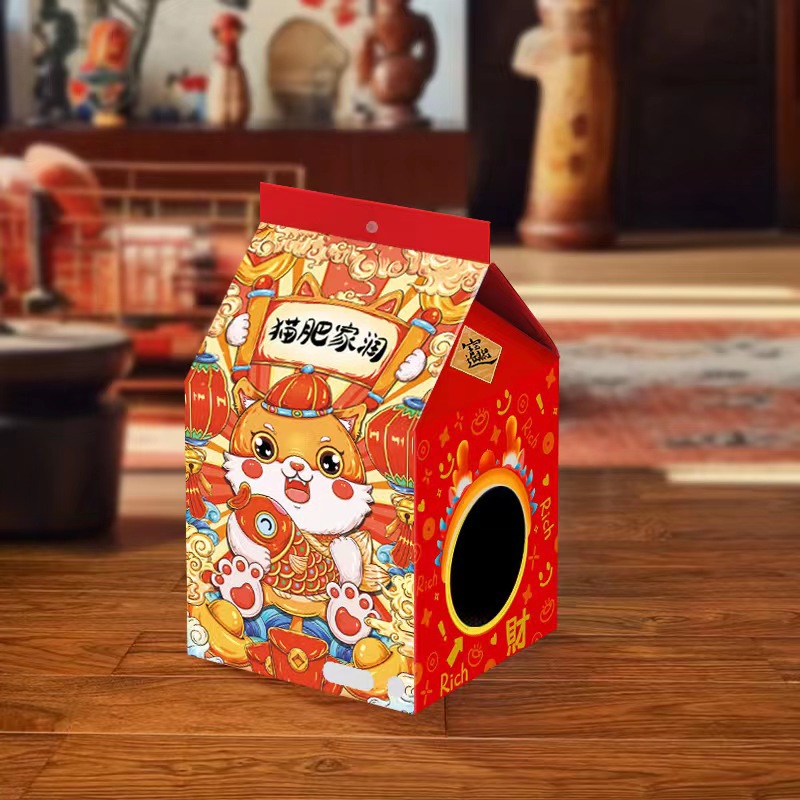 대외 무역 딸기 우유 상자 고양이 스크래치 보드 도매 골판지 고양이 둥지 고양이 발톱 판 둥지 폐쇄 고양이 상자
