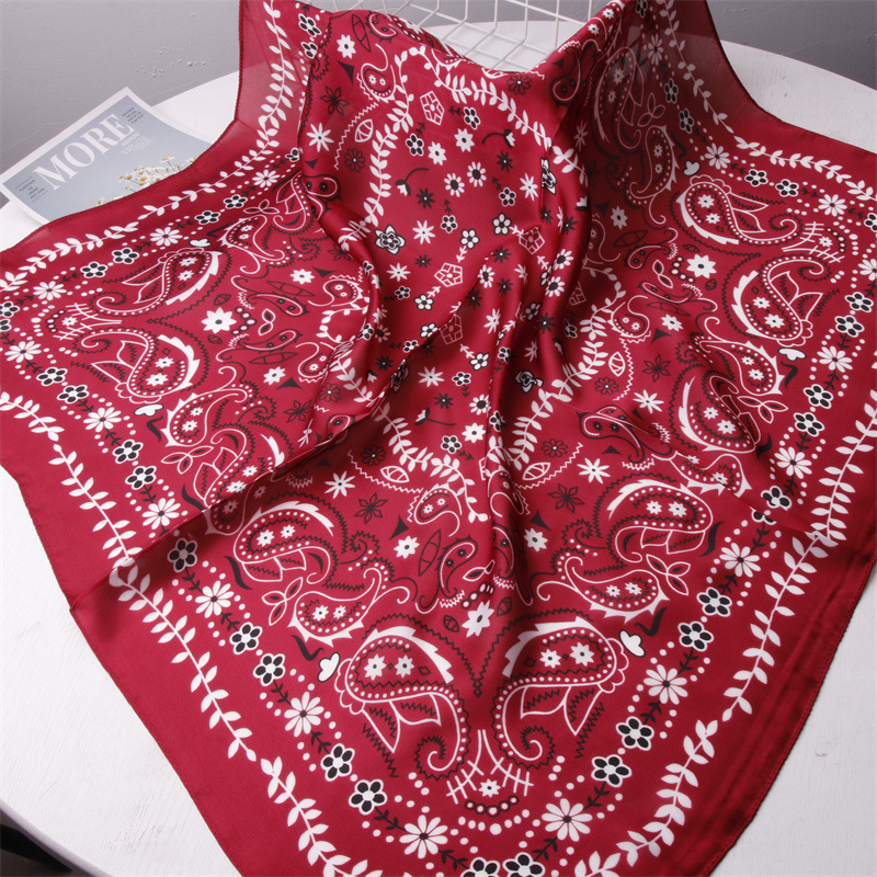 봄과 여름 2022 새로운 기하학 캐슈 70 모조 실크 스카프 여성용 모든 매치 스카프 여름 자외선 차단제 작은 숄