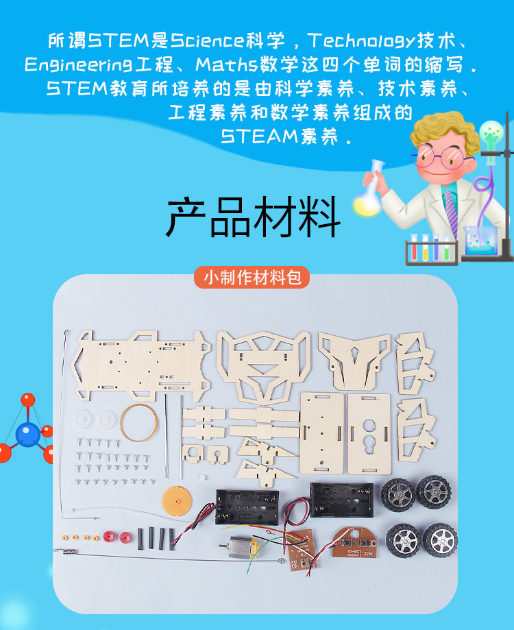DIY 원격 조종 사륜구동 레이싱카 어린이 장난감 과학기술 소형 제작 초등학생 교육용 과학 실험 노점 인기 상품