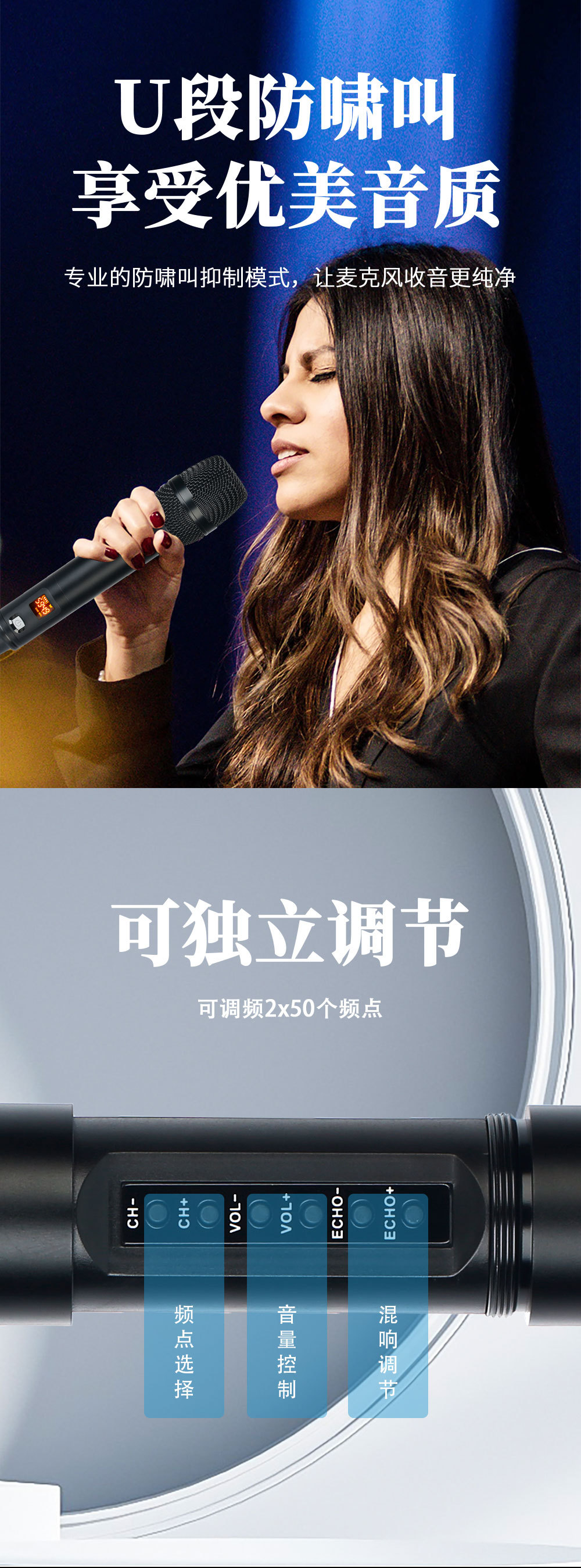 공장 직접 무선 마이크 한 드래그 두 핸드 헬드 FM U 섹션 안티 하울링 소음 감소 단계 전문 회의