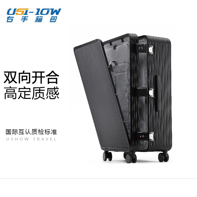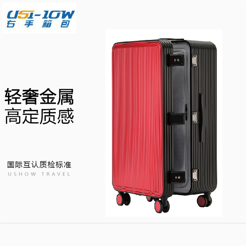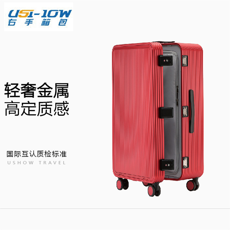 전면 오픈 풀 메탈 알루미늄 마그네슘 합금 수하물 케이스 여성 수하물 케이스 20/24/26 인치 유니버설 휠 남성용 가방스토어 가기