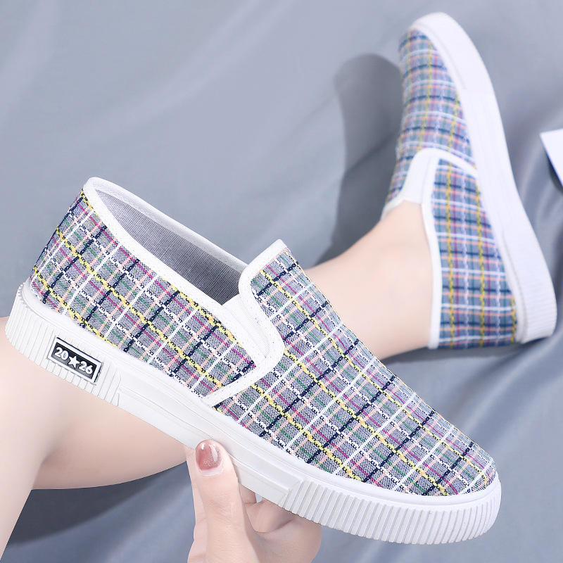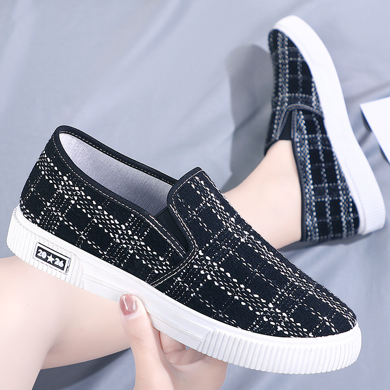트렌디한 신발 봄과 가을 신상품 천 신발 여성용 캔버스 신발 학생 신발 슬립온 캐주얼 플랫 패셔너블한 여성용 싱글 레이어 신발스토어 가기