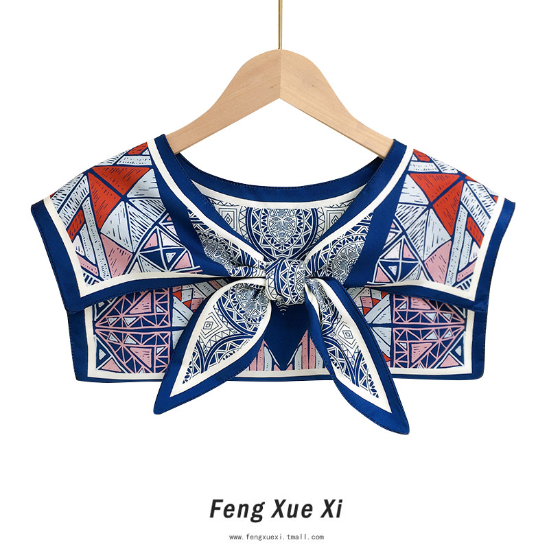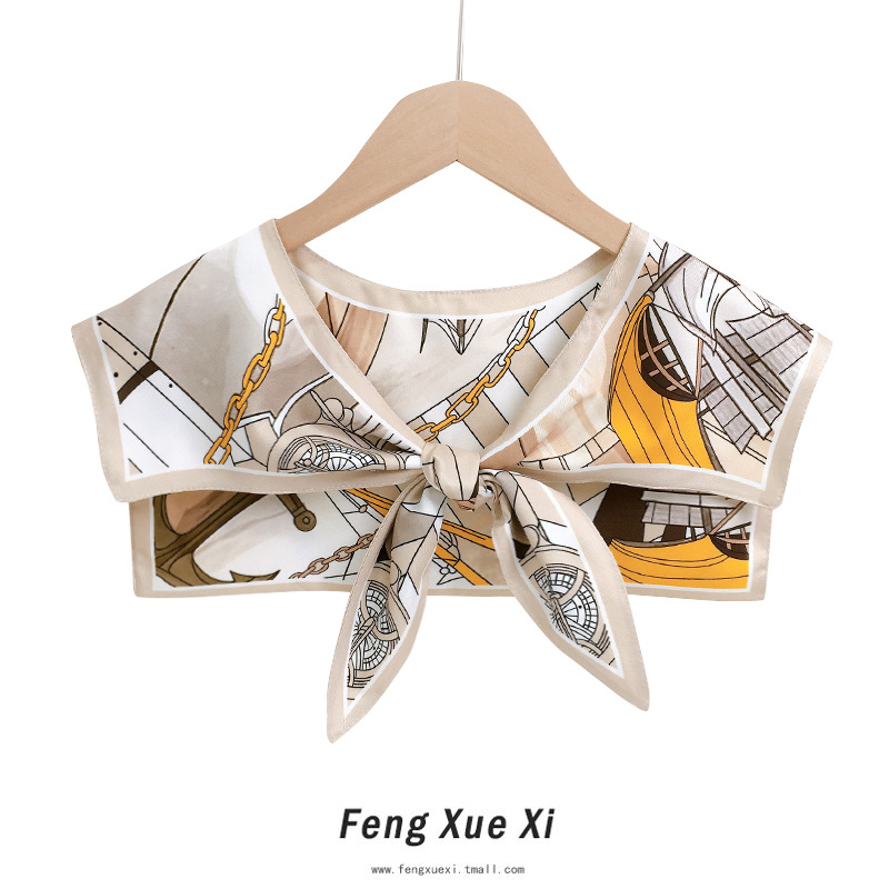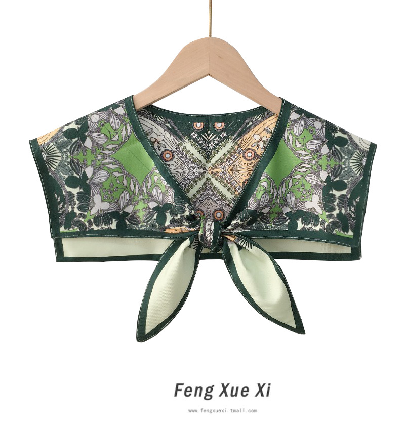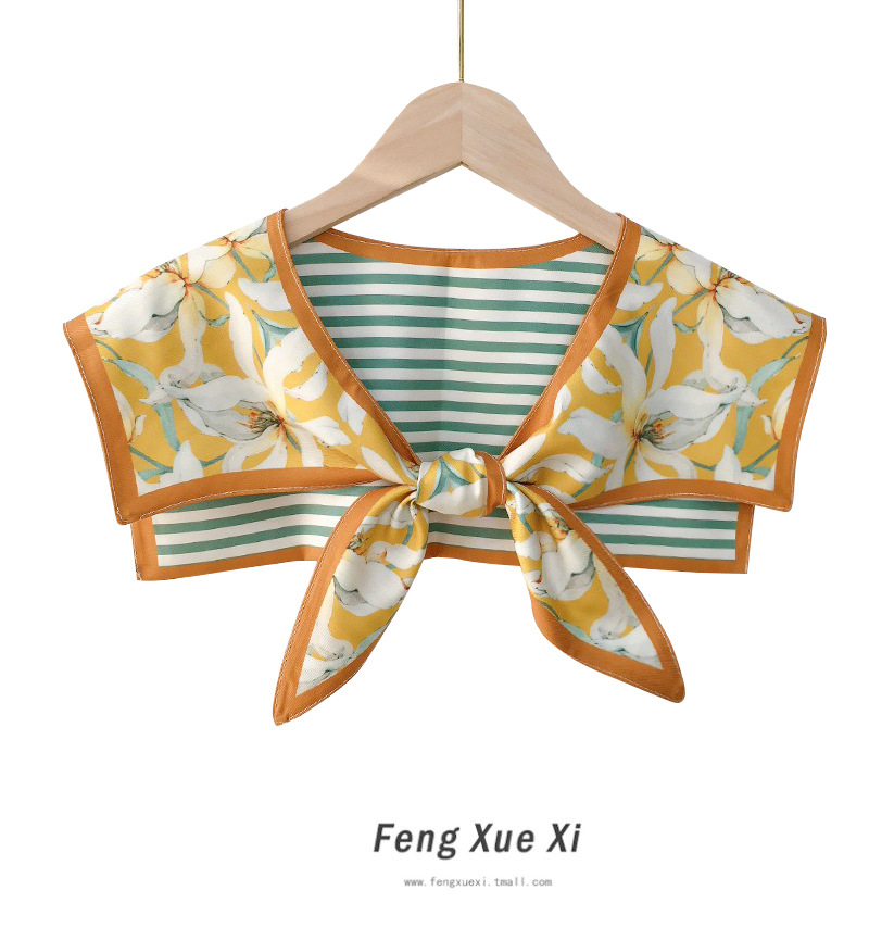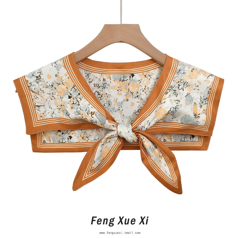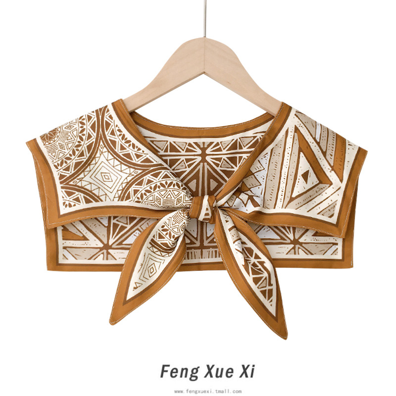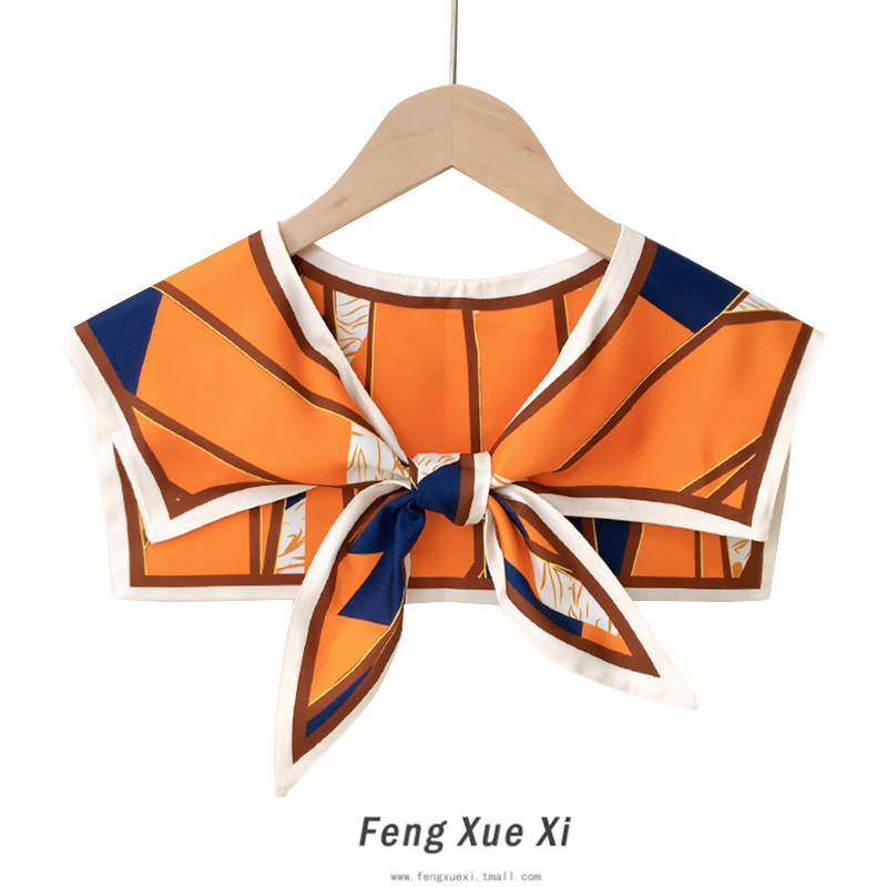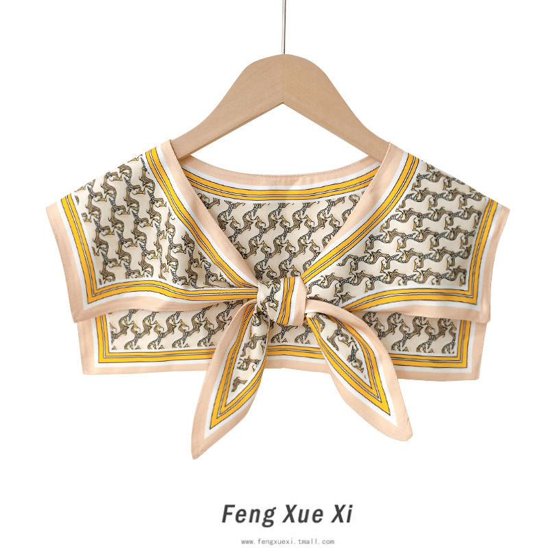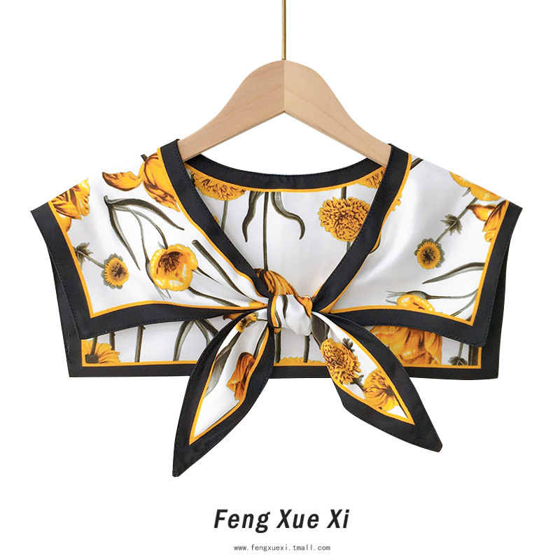 2024 봄 스타일 실크 스카프와 작은 숄 여성용 프린트 봄, 가을 매듭 가짜 칼라 어깨 스카프 제조 업체 도매