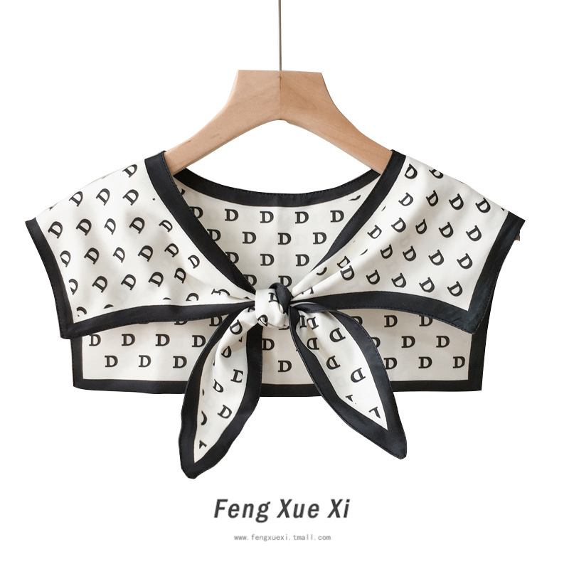 2024 봄 스타일 실크 스카프와 작은 숄 여성용 프린트 봄, 가을 매듭 가짜 칼라 어깨 스카프 제조 업체 도매스토어 가기