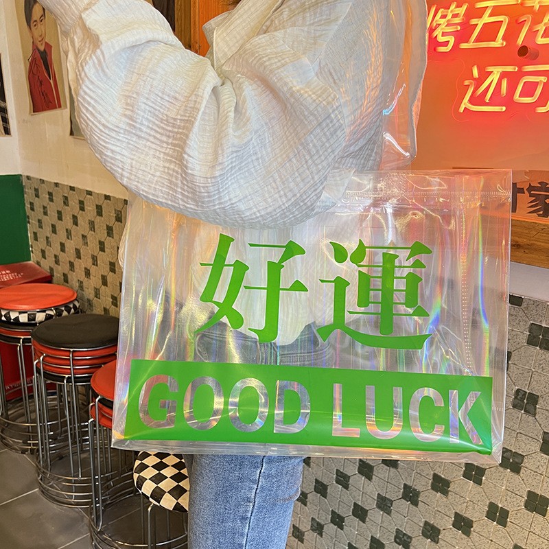 공장 공급 레이저 토트 백 인쇄 가능 로고 매직 비닐 봉투 도매 쇼핑몰 광고 기프트 쇼핑백스토어 가기